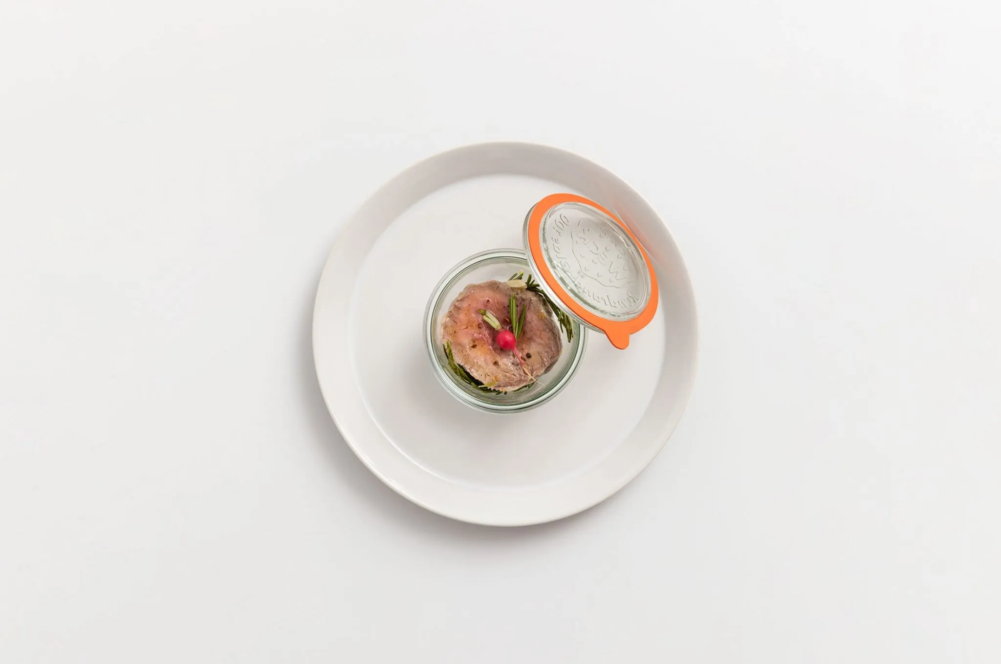 Clean the edges of the jar, close the gaskets and clamps and place it in the microwave (or in the Ultracombi in microwave mode), leaving it to cook for 3 minutes at 800 W.