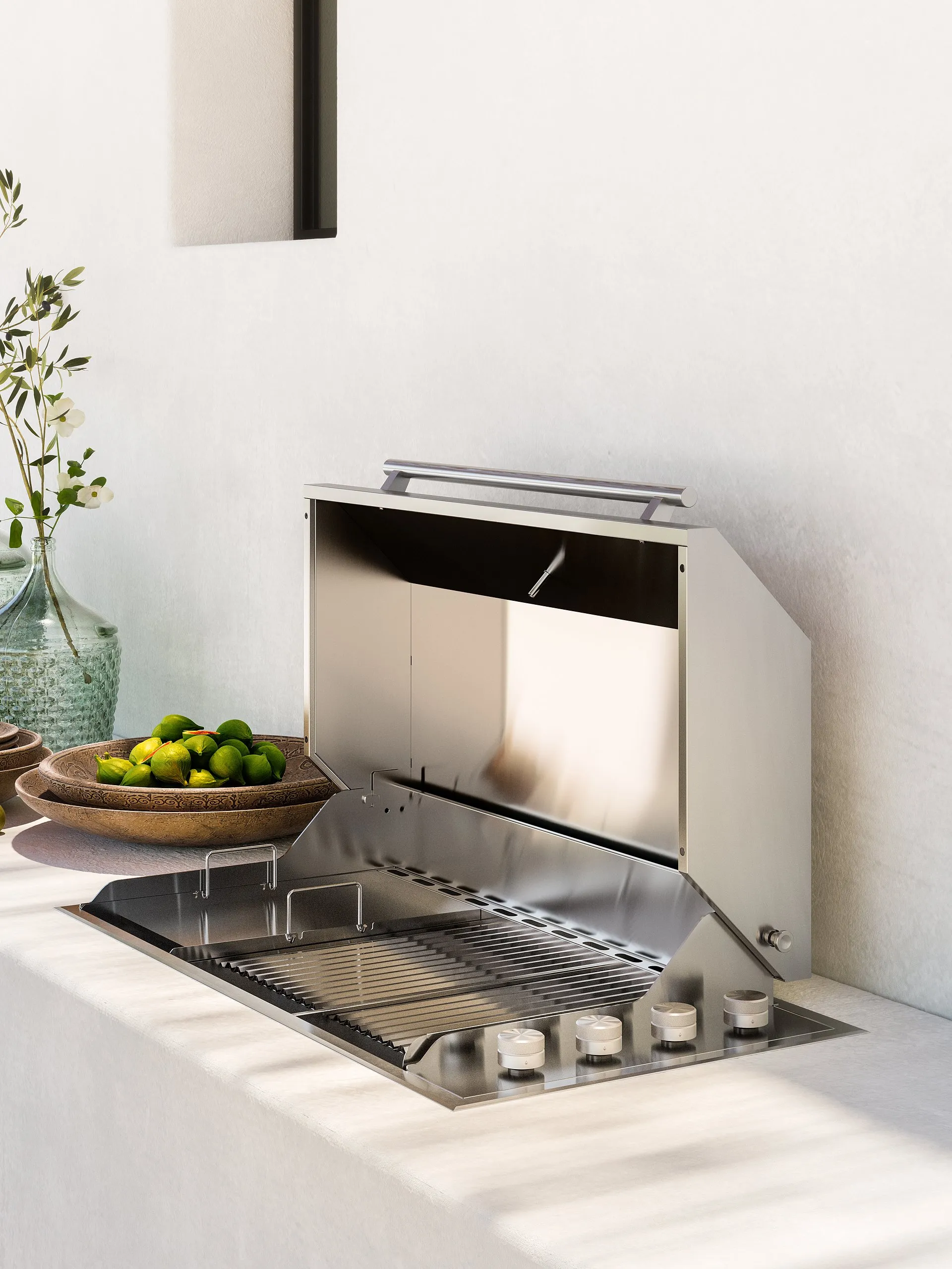 Like the built-in barbecue with protective cover, each appliance uses innovative technology to guarantee the best performance even on holiday: once again, cooking plays a key role in the everyday life of a place designed to be experienced fully, much closer to being one’s home than a simple, albeit beautiful, summer location.