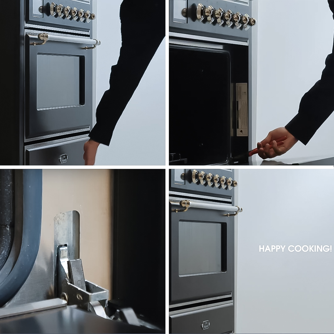 Whether you’re replacing the oven door or performing a deep clean, knowing how to properly remove and reinstall the oven door on your ILVE Majestic II range is essential. This step-by-step guide ensures a smooth and safe process with minimal effort.