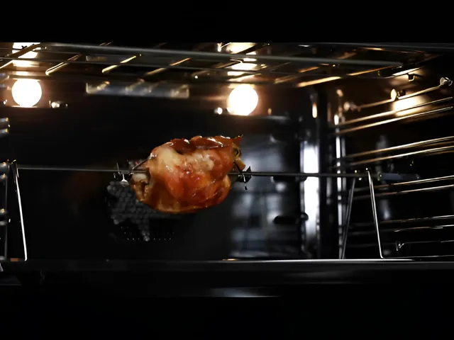 Start Cooking: Once your meat is securely in the oven and the rotisserie is spinning, you can close the oven door and let the magic happen. It’s important not to open the door too frequently, as this will release heat and could affect the cooking time.
