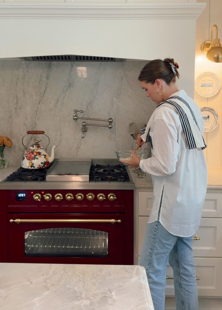 The hardware feels lux, the burners belong in a chef’s kitchen, and the design itself sets the entire tone for the rest of our kitchen! It’s 100% the statement coat, flared trousers, sparkly dress, or standout shoes to this part of our home.