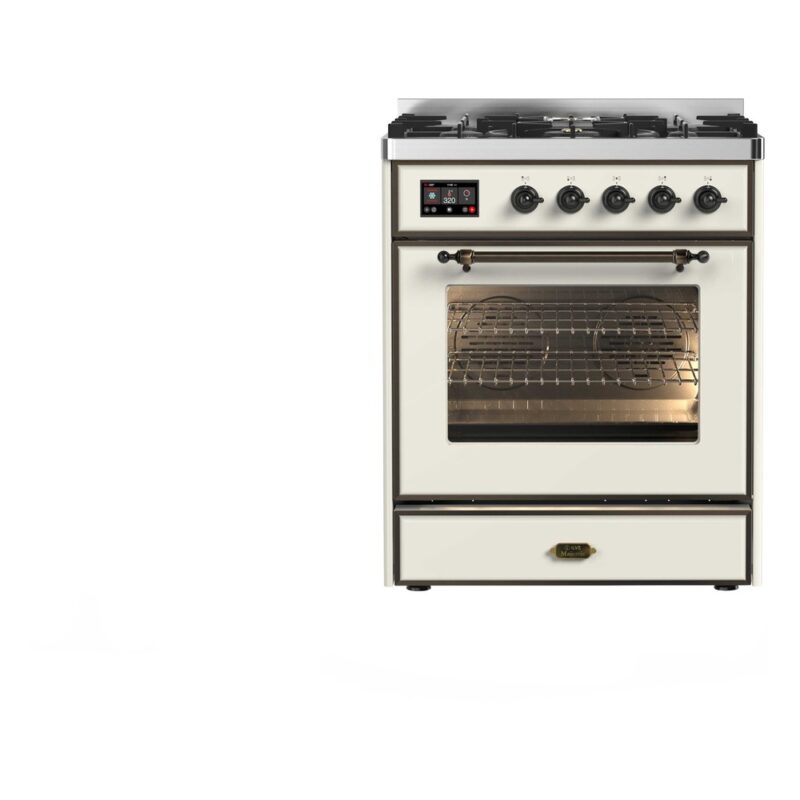ILVE UM30DNE3AWB Majestic II 30 inch Dual Fuel Range with 5 Black Brass Burners (Natural Gas, Triple Glass Door, Antique White, Burnished)