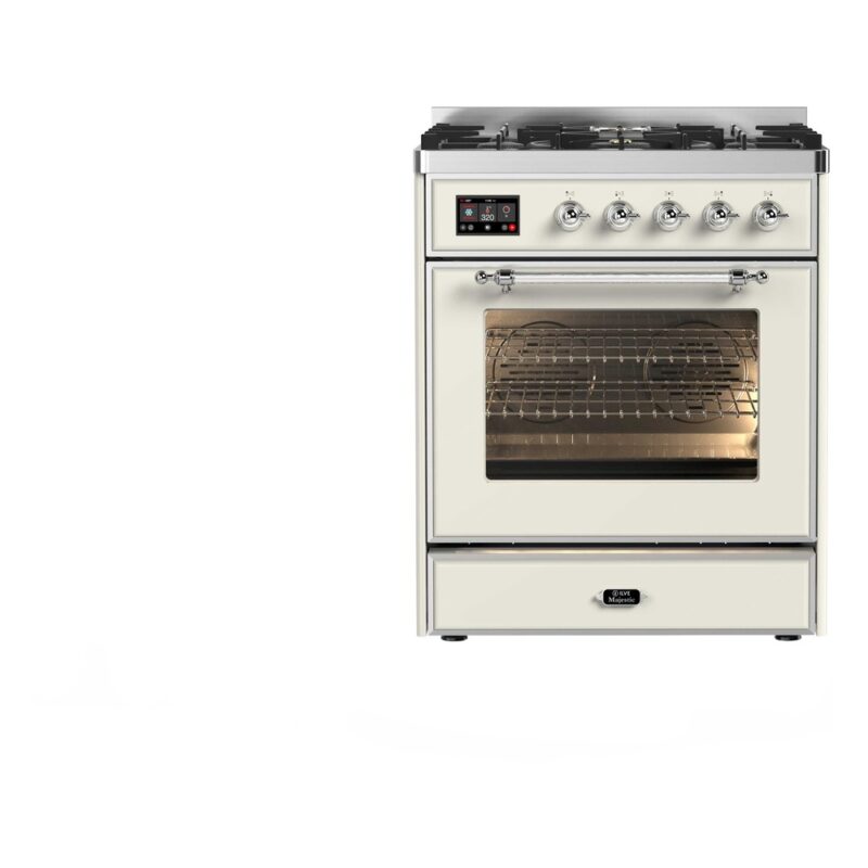 ILVE UM30DNE3AWC Majestic II 30 inch Dual Fuel Range with 5 Black Brass Burners (Natural Gas, Triple Glass Door, Antique White, Chrome)