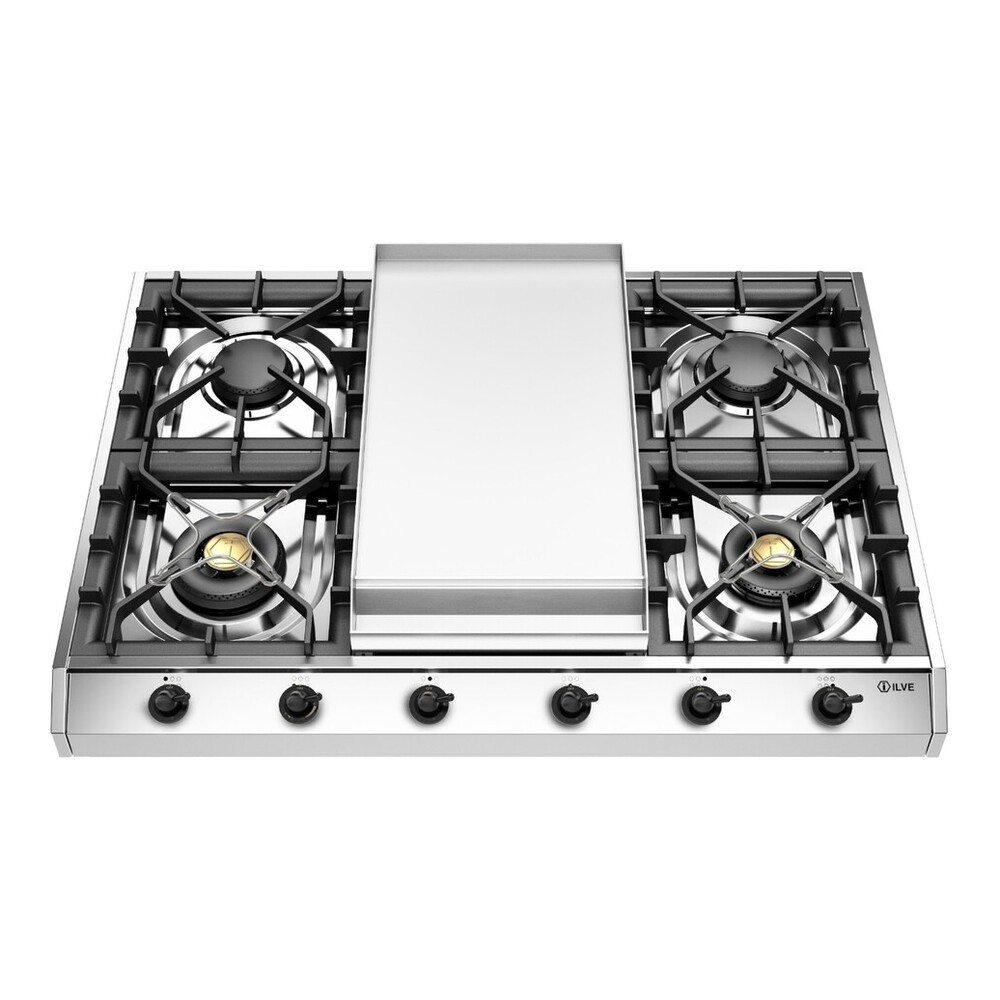 ILVE 36″ Built-In Gas Cooktop with 4 Burners and Griddle, in Stainless Steel