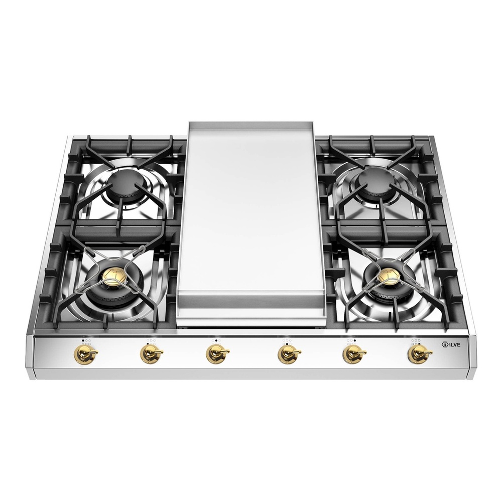ILVE 36″ Built-In Gas Cooktop with 4 Burners and Griddle, in Stainless Steel