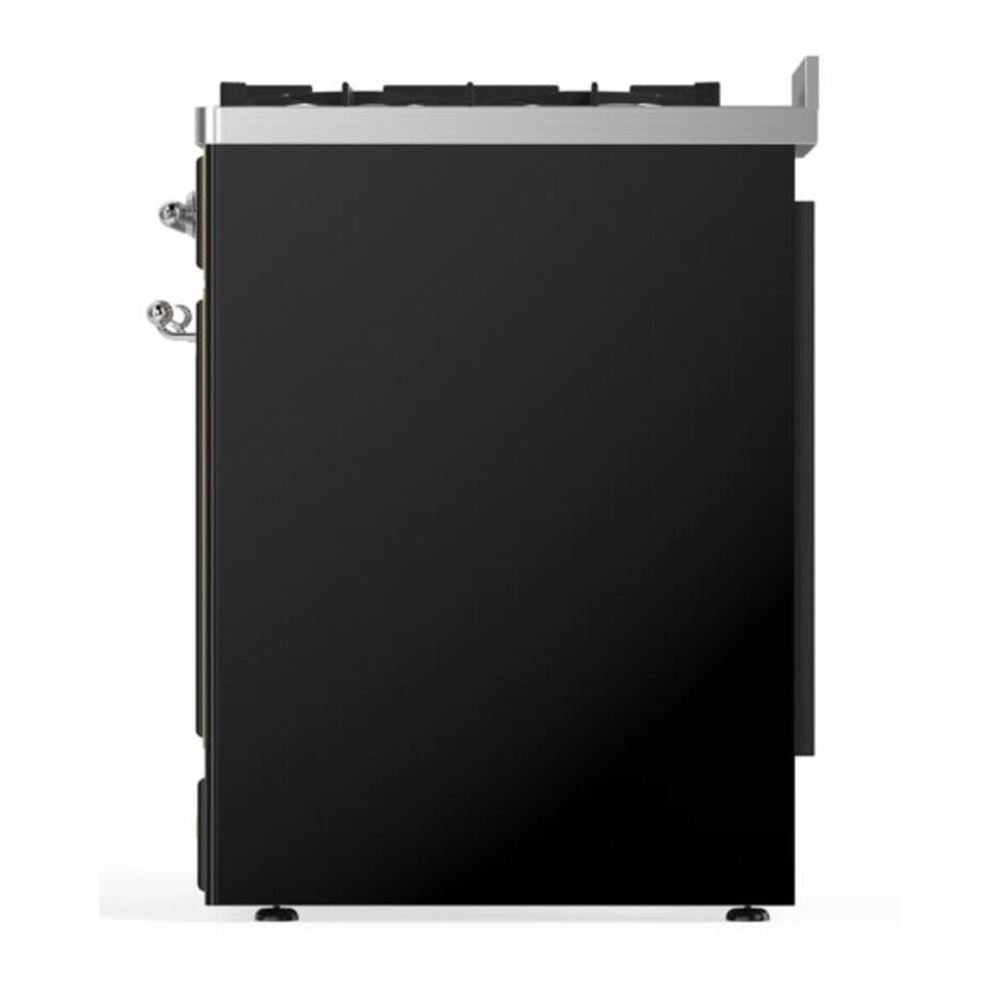 ILVE UM30DNE3BKCLP Majestic II 30 inch Dual Fuel Range with 5 Black Brass Burners (Liquid Propane, Triple Glass Door, Glossy Black, Chrome)