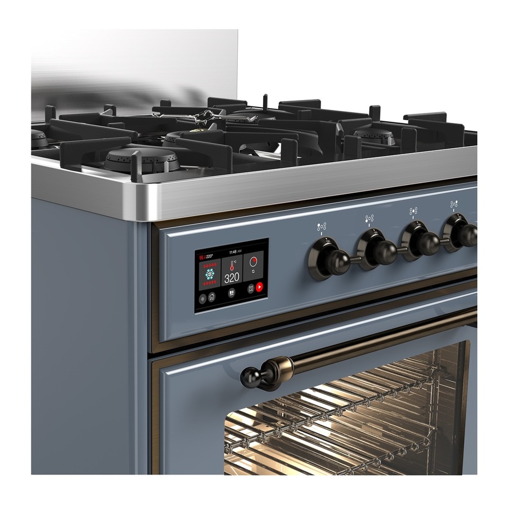 ILVE UM30NR3BGBLP Majestic III 30 inch Dual Fuel Range with 5 Black Brass Burners, Dual Function Burner up to 25,000 BTU (Liquid Propane, Triple Glass Door, Blue Grey, Burnished)