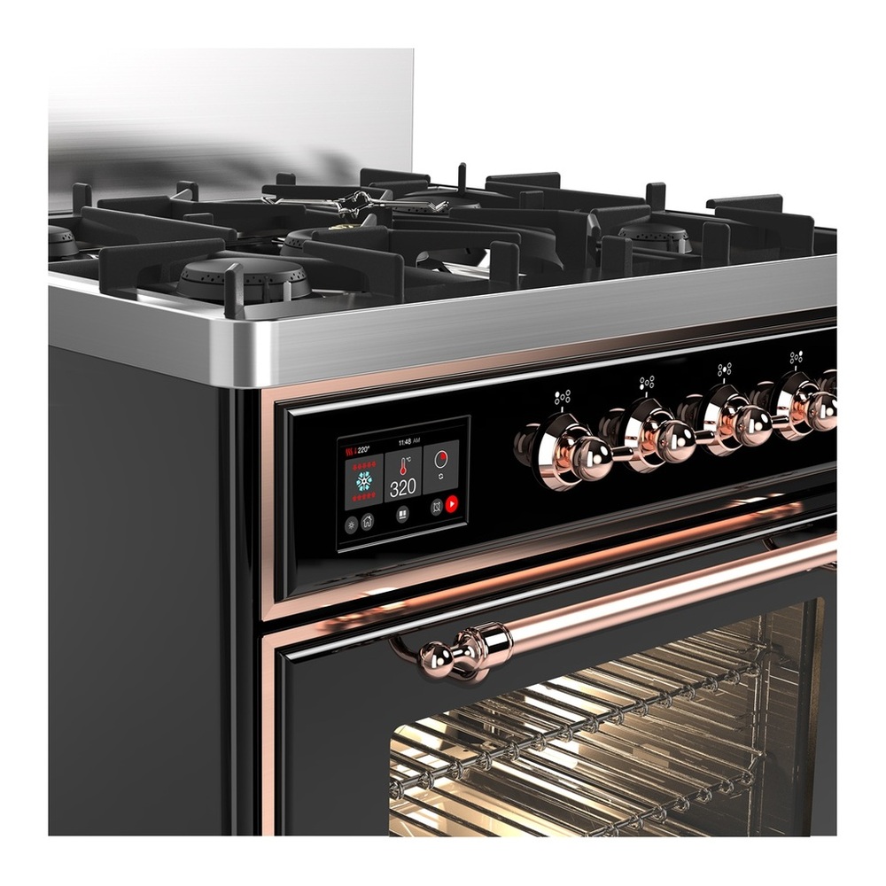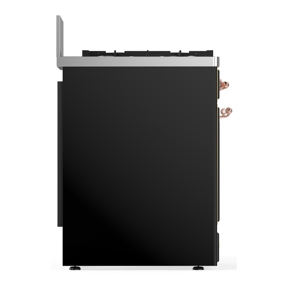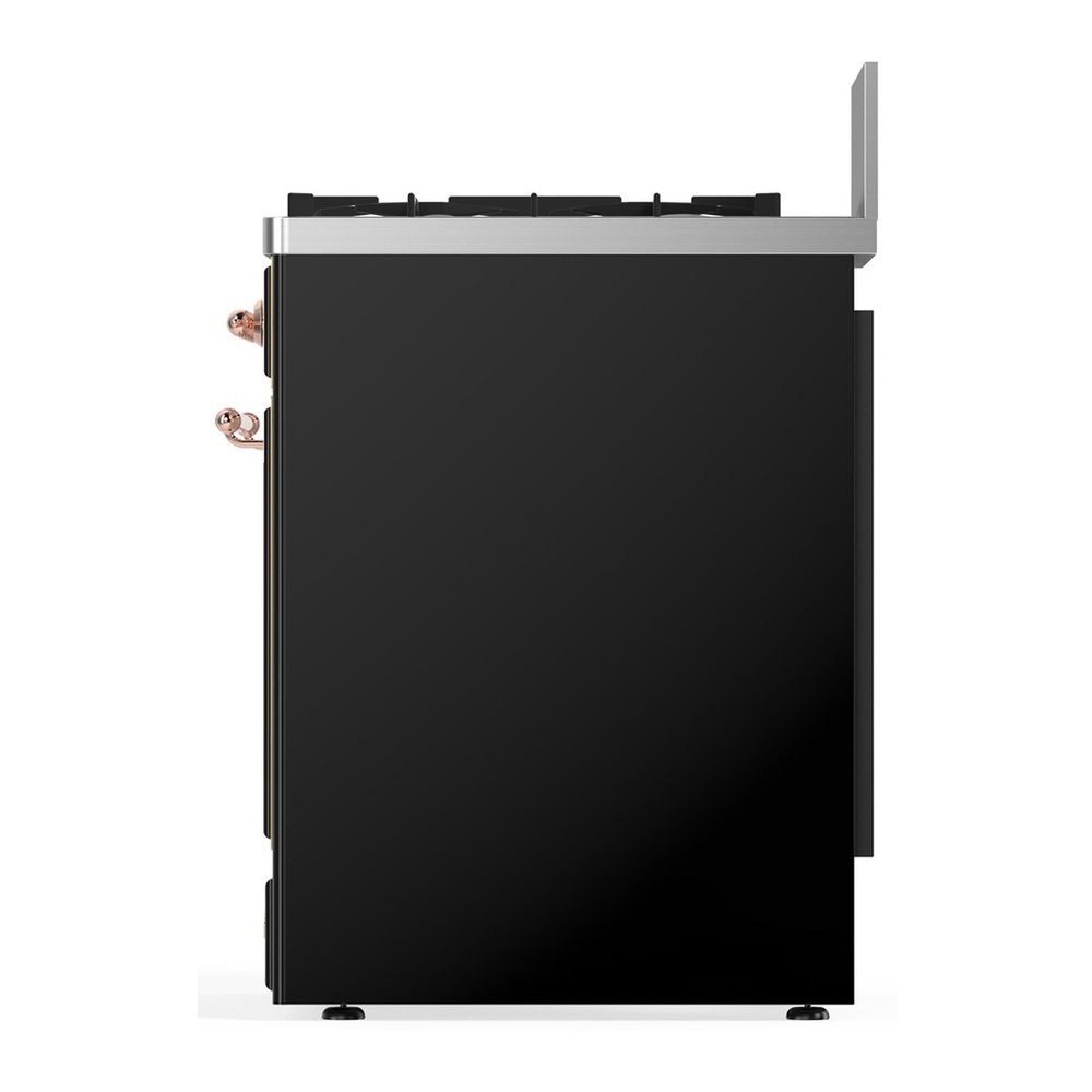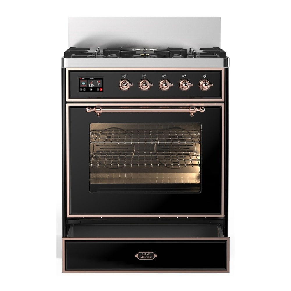 ILVE UM30NR3BKP Majestic III 30 inch Dual Fuel Range with 5 Black Brass Burners, Dual Function Burner up to 25,000 BTU (Natural Gas, Triple Glass Door, Glossy Black, Copper)