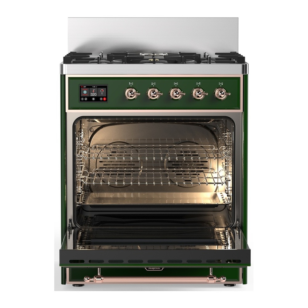ILVE UM30NR3EGPLP Majestic III 30 inch Dual Fuel Range with 5 Black Brass Burners, Dual Function Burner up to 25,000 BTU (Liquid Propane, Triple Glass Door, Emerald Green, Copper)