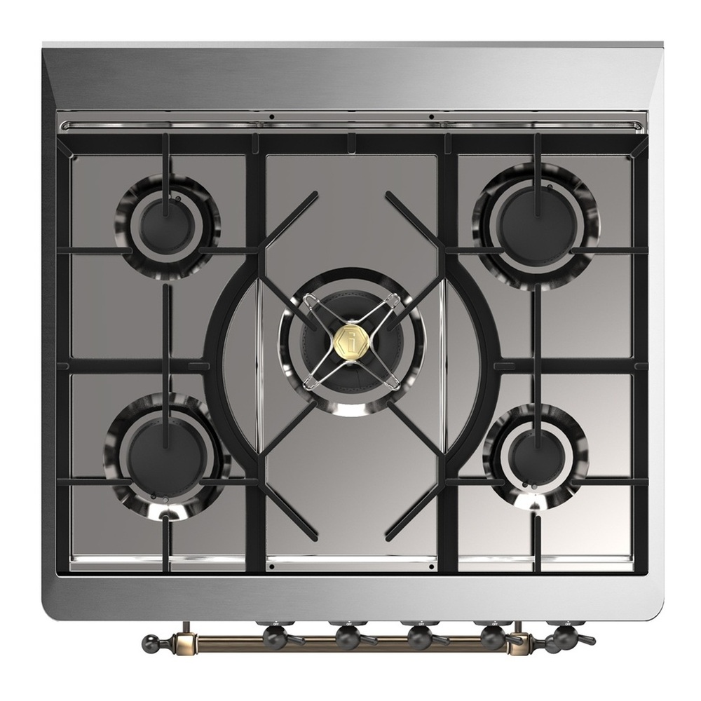 ILVE UM30NR3MGB Majestic III 30 inch Dual Fuel Range with 5 Black Brass Burners, Dual Function Burner up to 25,000 BTU (Natural Gas, Triple Glass Door, Graphite Matte, Burnished)