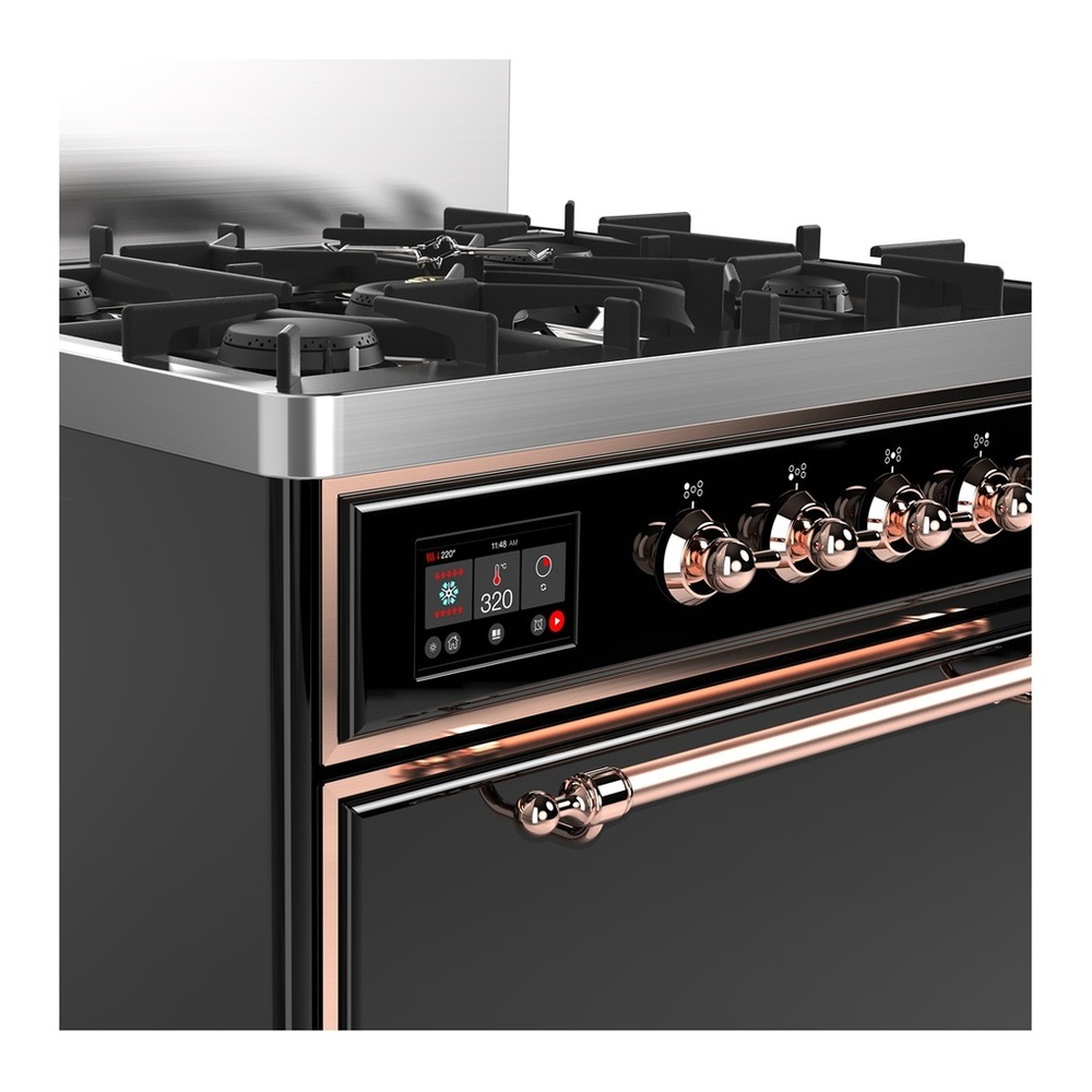 ILVE UM30QNR3BKP Majestic III 30 inch Dual Fuel Range with 5 Black Brass Burners, Dual Function Burner up to 25,000 BTU (Natural Gas, Solid Door, Glossy Black, Copper)
