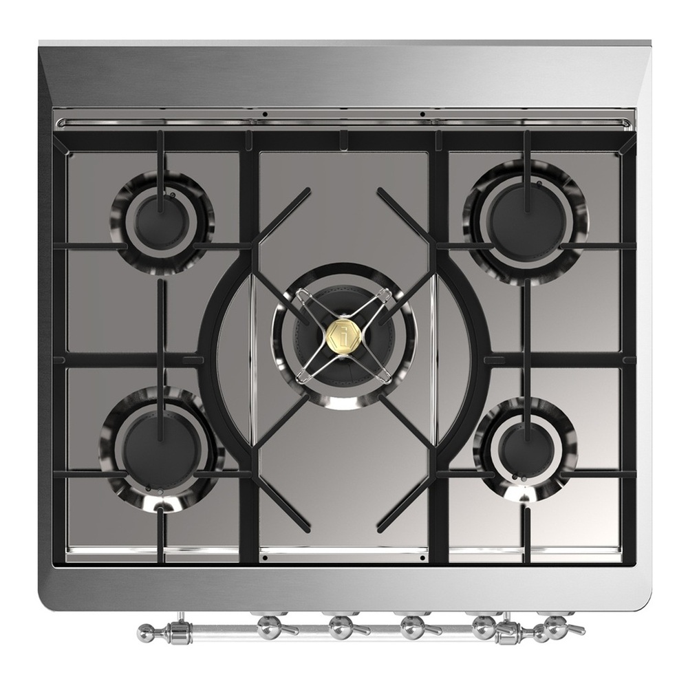 The 30″ Majestic dual fuel range combines the classic Italian style and cutting-edge innovative technology, where form meets function. This range features a 5 gas burner cooktop, equipped with a total black brass burner that has a non-stick nanotechnological coating, boasts a spacious 4 cu. ft. oven capacity and 4.3″ full touch oven control display.