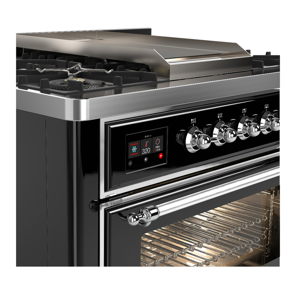 ILVE UM36FNR3BKCLP Majestic III 36 inch Dual Fuel Range with 6 Black Brass Burners and Griddle, Dual Function Burner up to 25,000 BTU (Triple Glass Door, Glossy Black, Chrome, Liquid Propane)