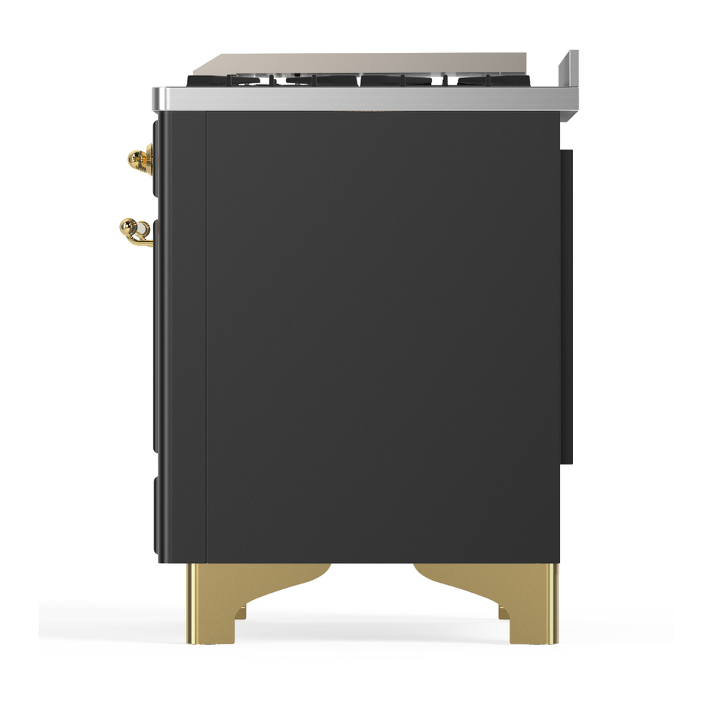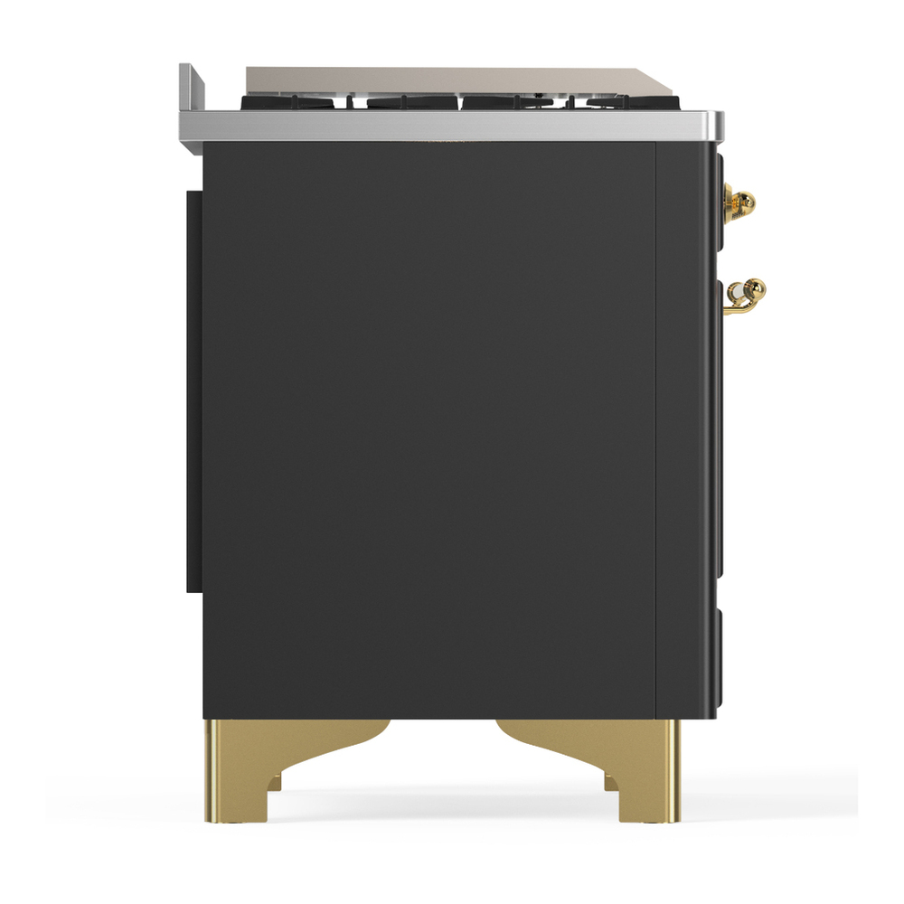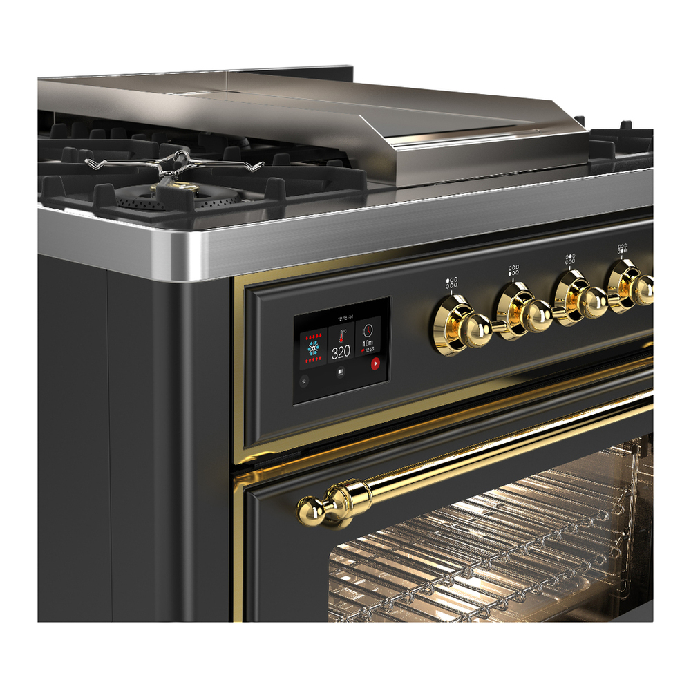 ILVE UM36FNR3MGG Majestic III 36 inch Dual Fuel Range with 6 Black Brass Burners and Griddle, Dual Function Burner up to 25,000 BTU (Triple Glass Door, Graphite Matte, Brass, Natural Gas)