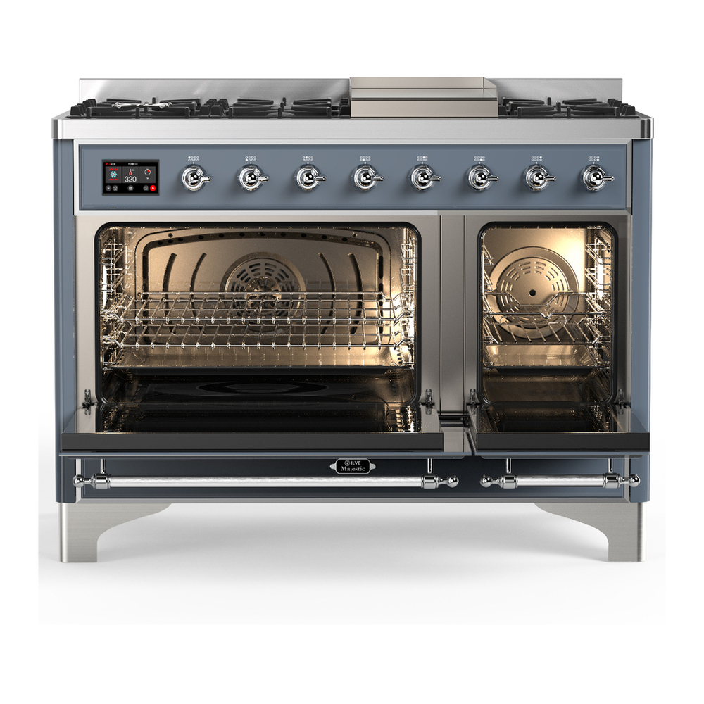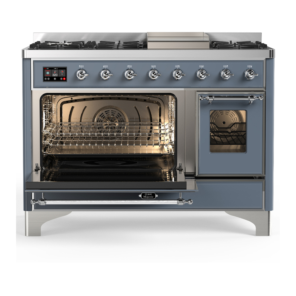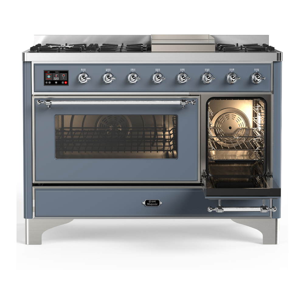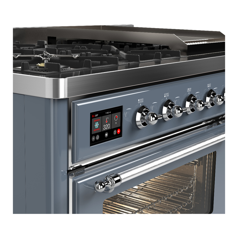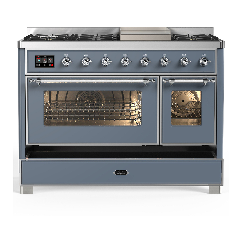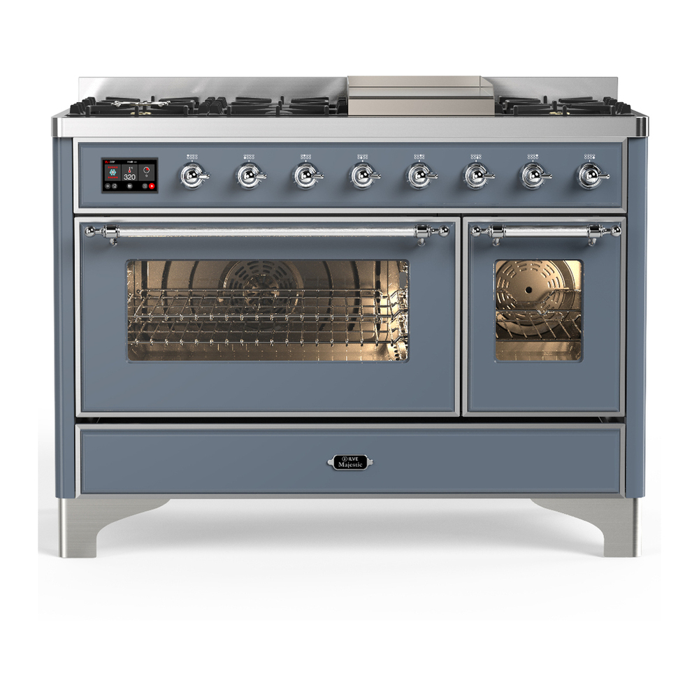 ILVE UM48FNR3BGCLP Majestic III 48 inch Dual Fuel Range with 8 Burners and Griddle, Dual Function Burner up to 25,000 BTU (Liquid Propane, Triple Glass Door, Blue Grey, Chrome)