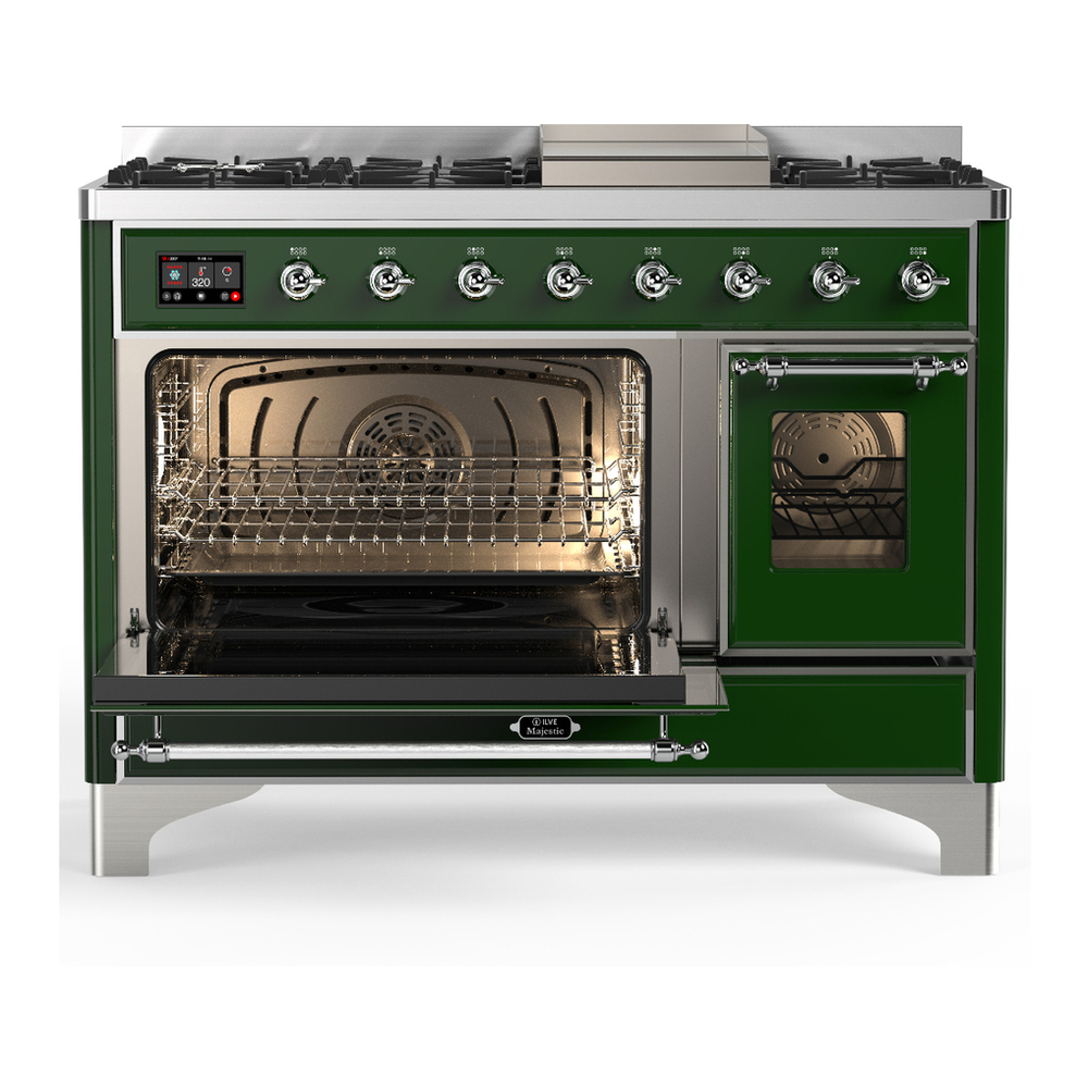 ILVE UM48FNR3EGC Majestic III 48 inch Dual Fuel Range with 8 Burners and Griddle, Dual Function Burner up to 25,000 BTU (Natural Gas, Triple Glass Door, Emerald Green, Chrome)