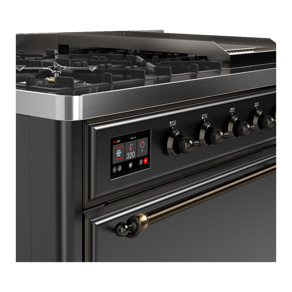 ILVE UM48FQNR3MGB Majestic III 48 inch Dual Fuel Range with 8 Burners and Griddle, Dual Function Burner up to 25,000 BTU (Natural Gas, Solid Door, Graphite Matte, Burnished)