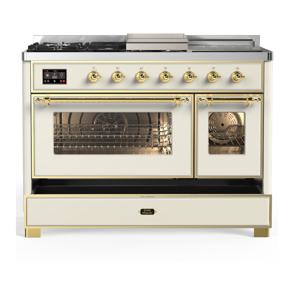 ILVE UM48FSNR3AWG Majestic III 48 inch Dual Fuel Range with 5 Black Brass Burners, Griddle and French Top, Dual Function Burner up to 25,000 BTU (Natural Gas, Triple Glass Door, Antique White, Brass)