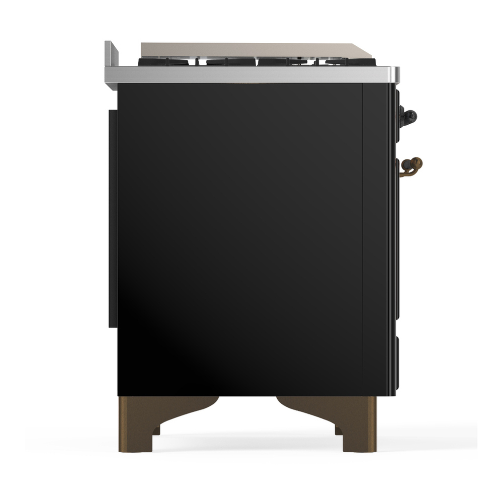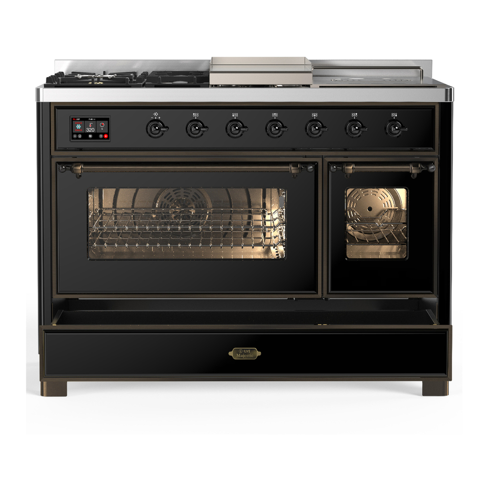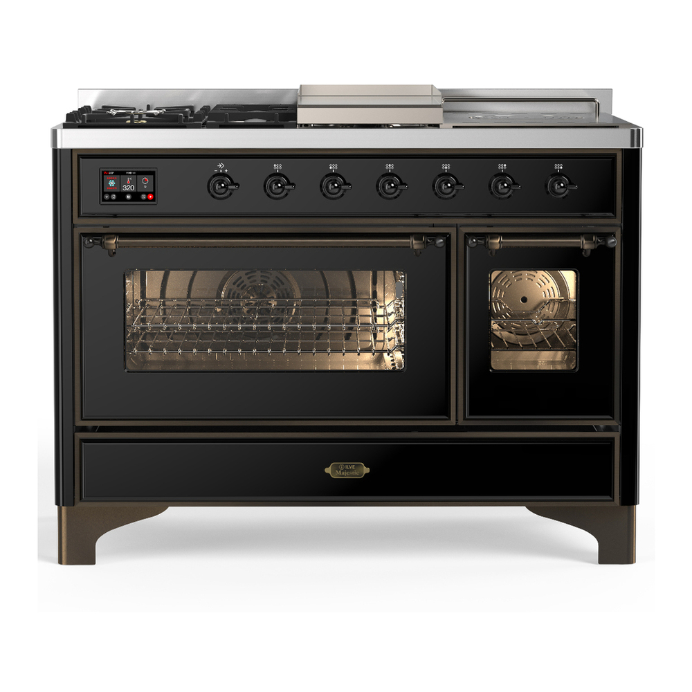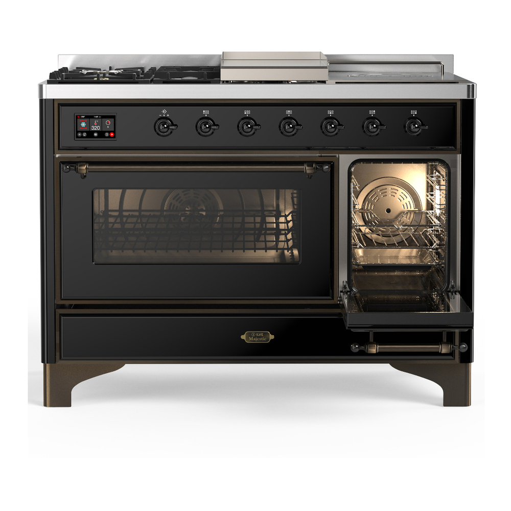 ILVE UM48FSNR3BKBLP Majestic III 48 inch Dual Fuel Range with 5 Black Brass Burners, Griddle and French Top, Dual Function Burner up to 25,000 BTU (Liquid Propane, Triple Glass Door, Glossy Black, Burnished)