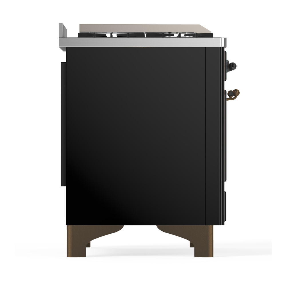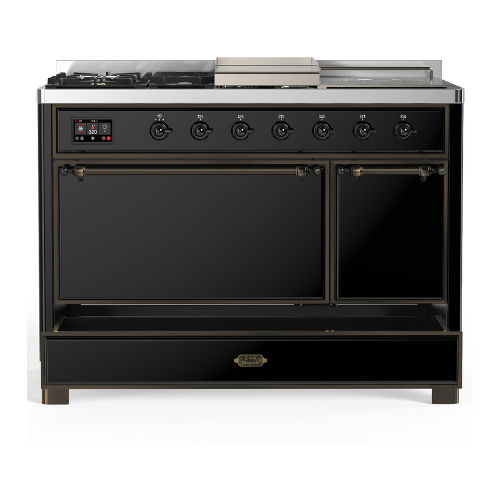 ILVE UM48FSQNR3BKB Majestic III 48 inch Dual Fuel Range with 5 Black Brass Burners, Griddle and French Top, Dual Function Burner up to 25,000 BTU (Natural Gas, Solid Door, Glossy Black, Burnished)
