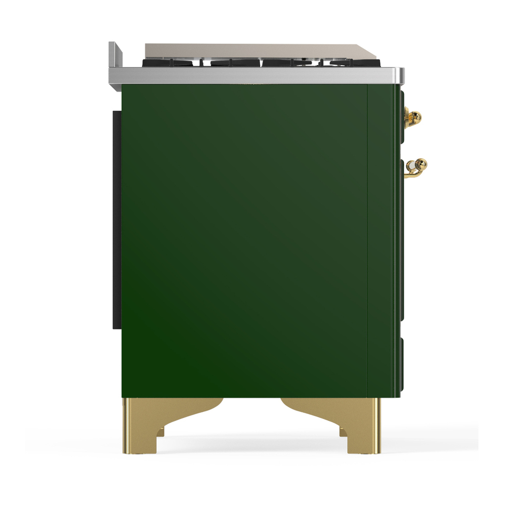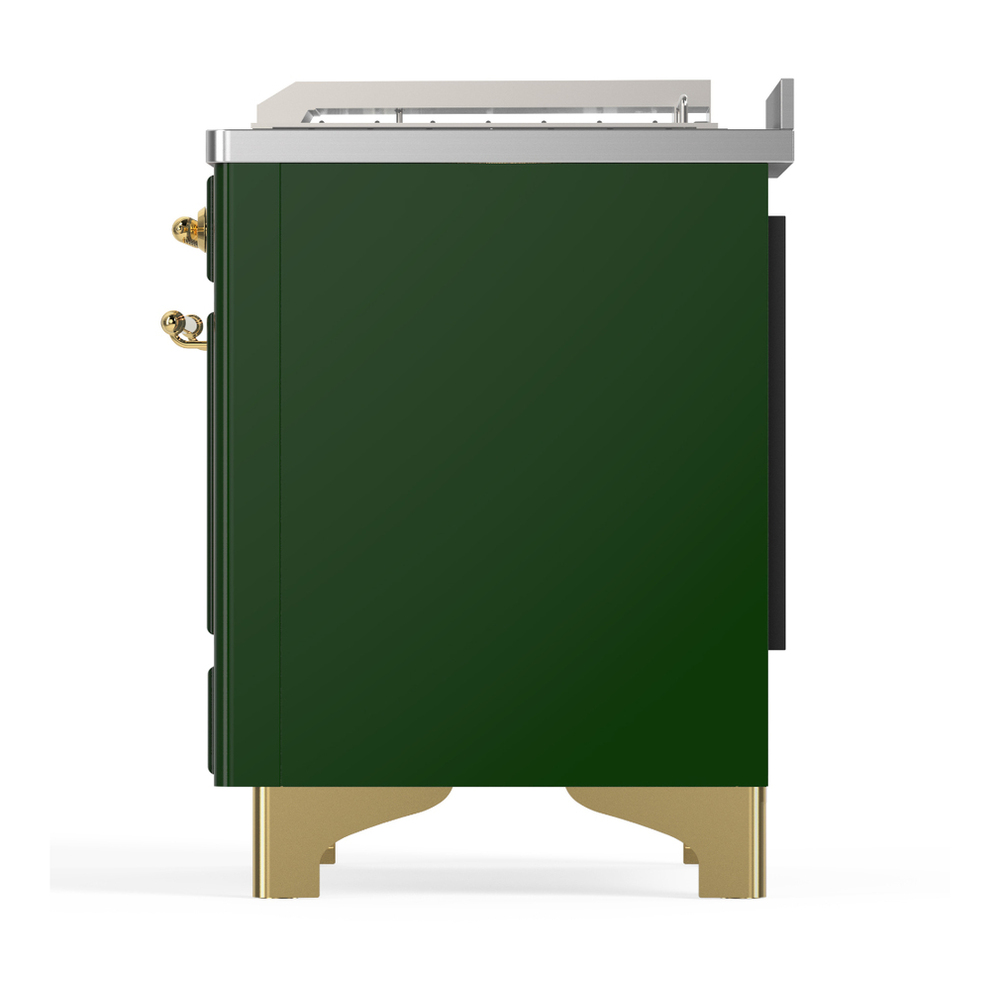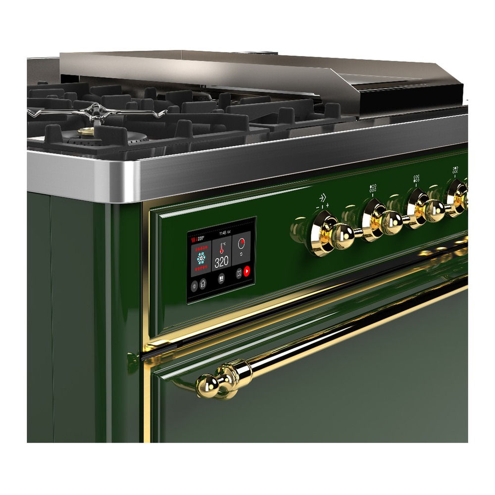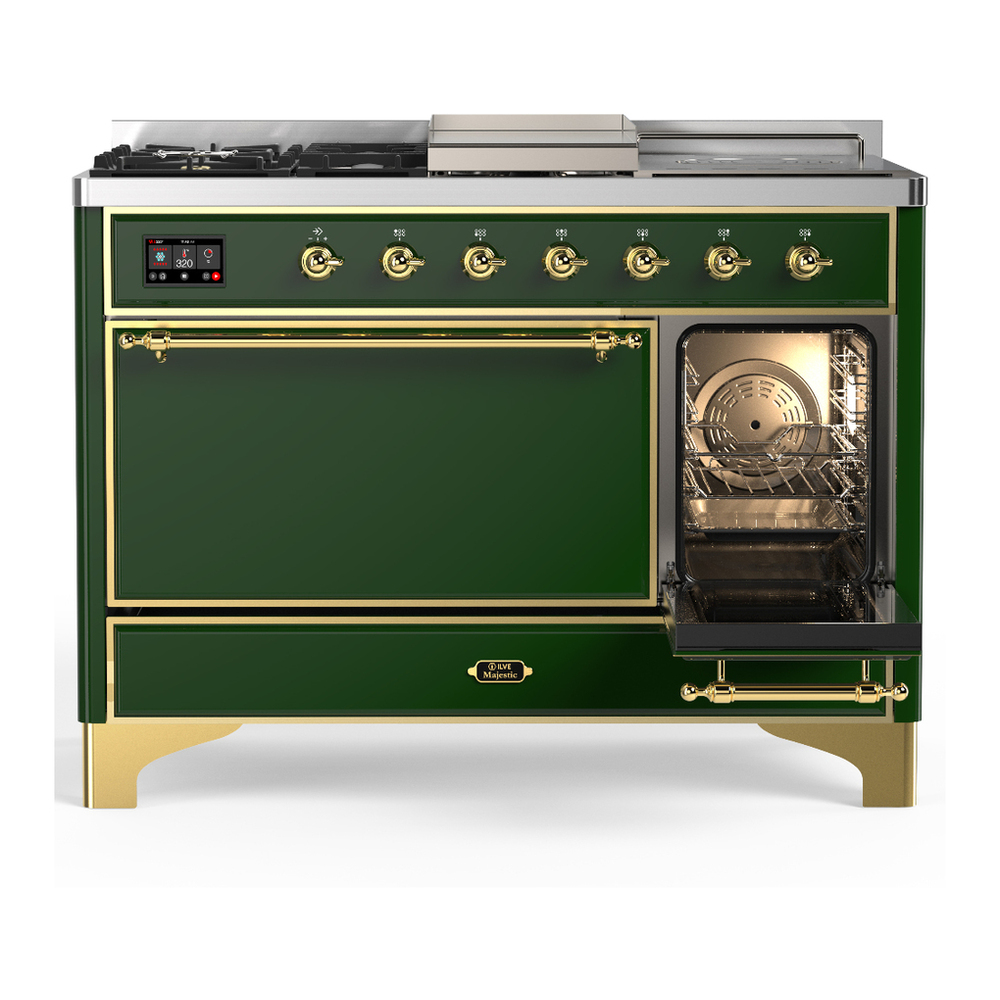 ILVE UM48FSQNR3EGG Majestic III 48 inch Dual Fuel Range with 5 Black Brass Burners, Griddle and French Top, Dual Function Burner up to 25,000 BTU (Natural Gas, Solid Door, Emerald Green, Brass)