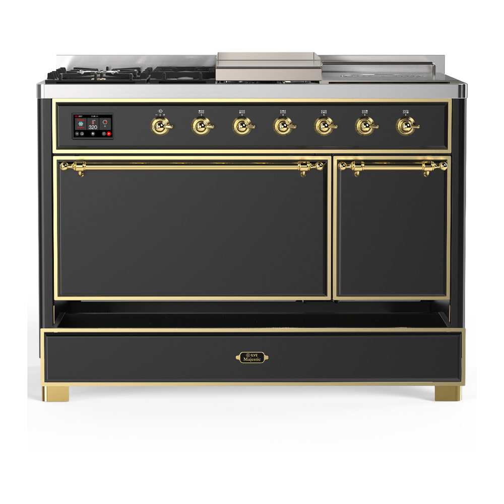 The Majestic 48″ dual fuel range combines the classic Italian style and cutting-edge technology. This range features 5 gas burner, griddle and French top, equipped with a total black brass burner with non-stick nanotechnological coating, dual 3.5 + 1.52 cu. ft. total oven capacity, 4.3″ full touch oven control display and easy clean enamel oven cavity.