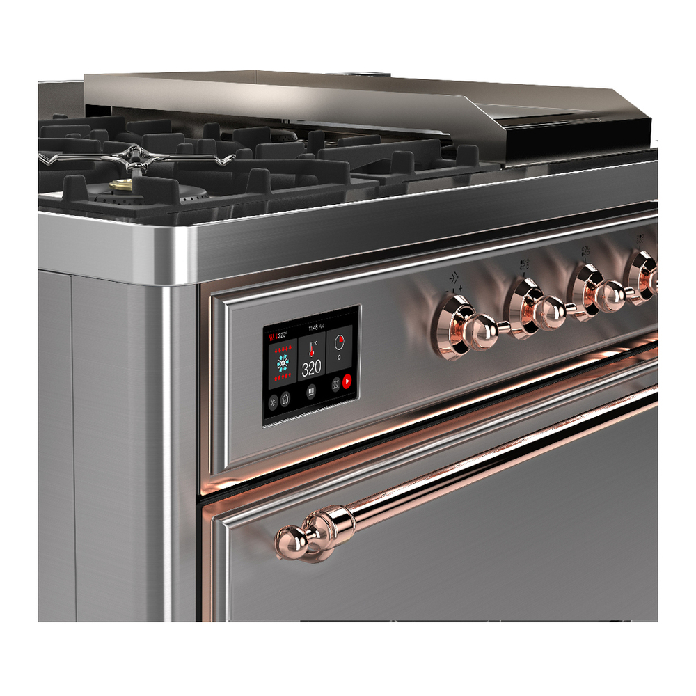 ILVE UM48FSQNR3SSP Majestic III 48 inch Dual Fuel Range with 5 Black Brass Burners, Griddle and French Top, Dual Function Burner up to 25,000 BTU (Natural Gas, Solid Door, Stainless Steel, Copper)