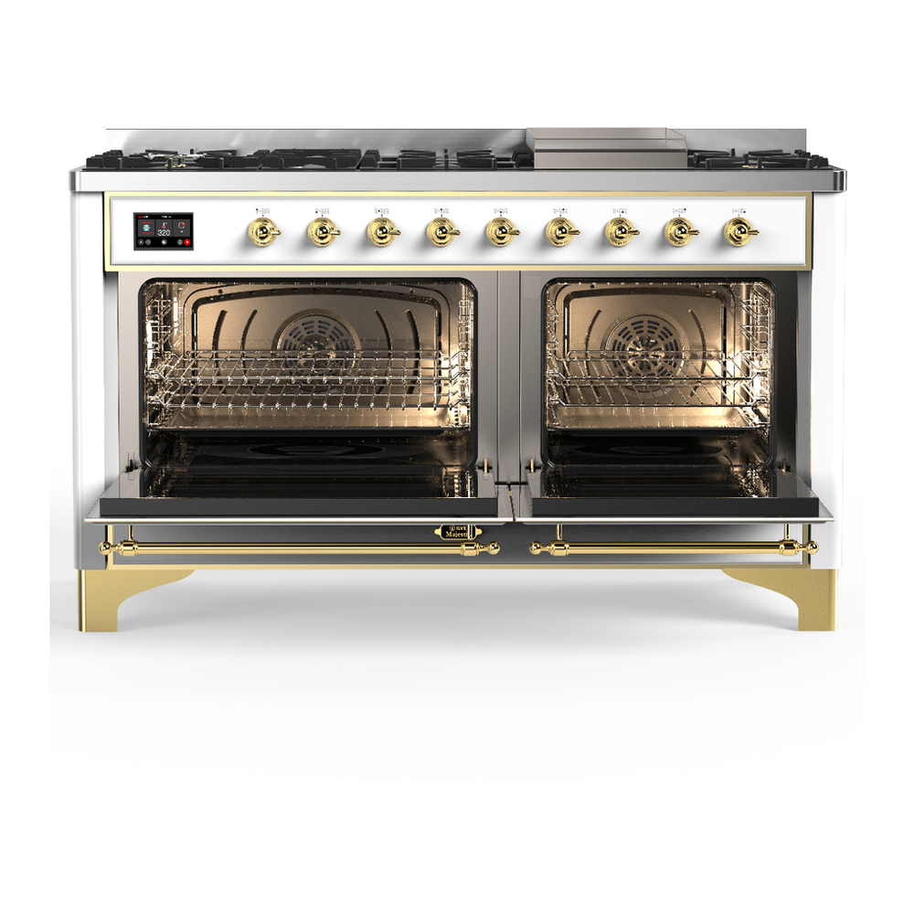 The Majestic 60″ dual fuel range combines the classic Italian style and cutting-edge technology. This range feature 9 gas burners and a griddle, equipped with a total black brass burner with non-stick nanotechnological coating, dual 3.5 + 2.3 cu. ft. total oven capacity, 4.3″ full touch oven control display and easy clean enamel oven cavity.