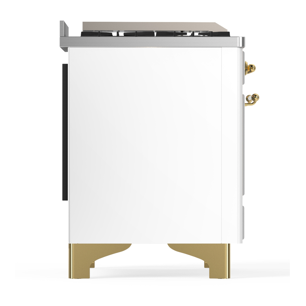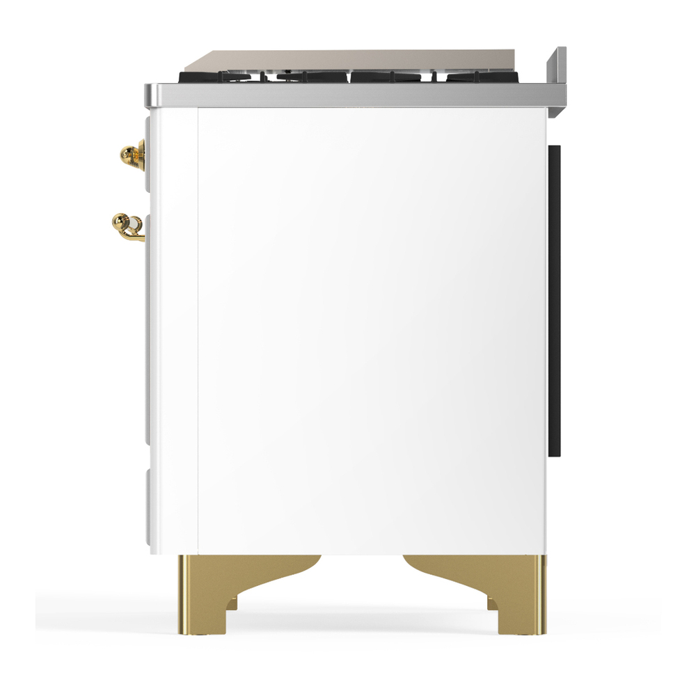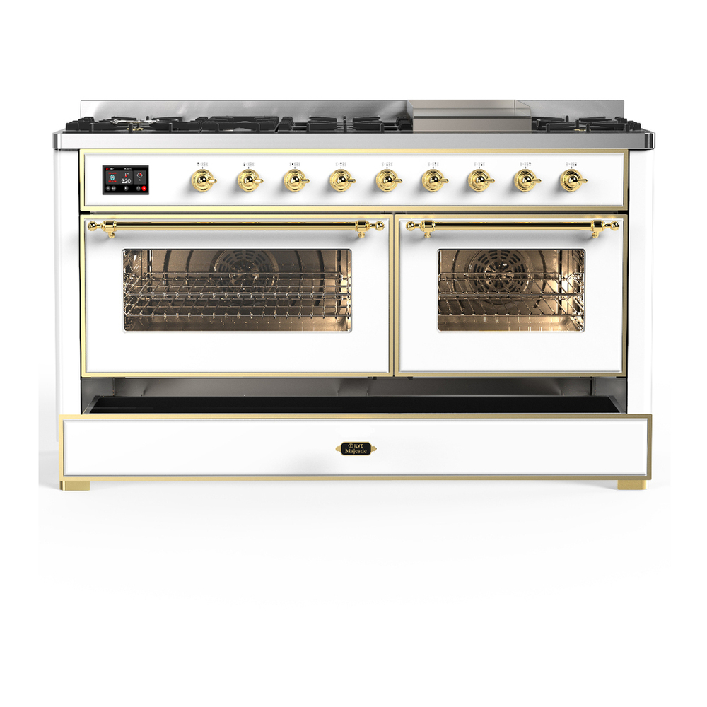 ILVE UM60FNR3WHGLP Majestic III 60 inch Dual Fuel Range with 9 Burners and Griddle, Dual Function Burner up to 25,000 BTU (Liquid Propane, Triple Glass Door, White, Brass)