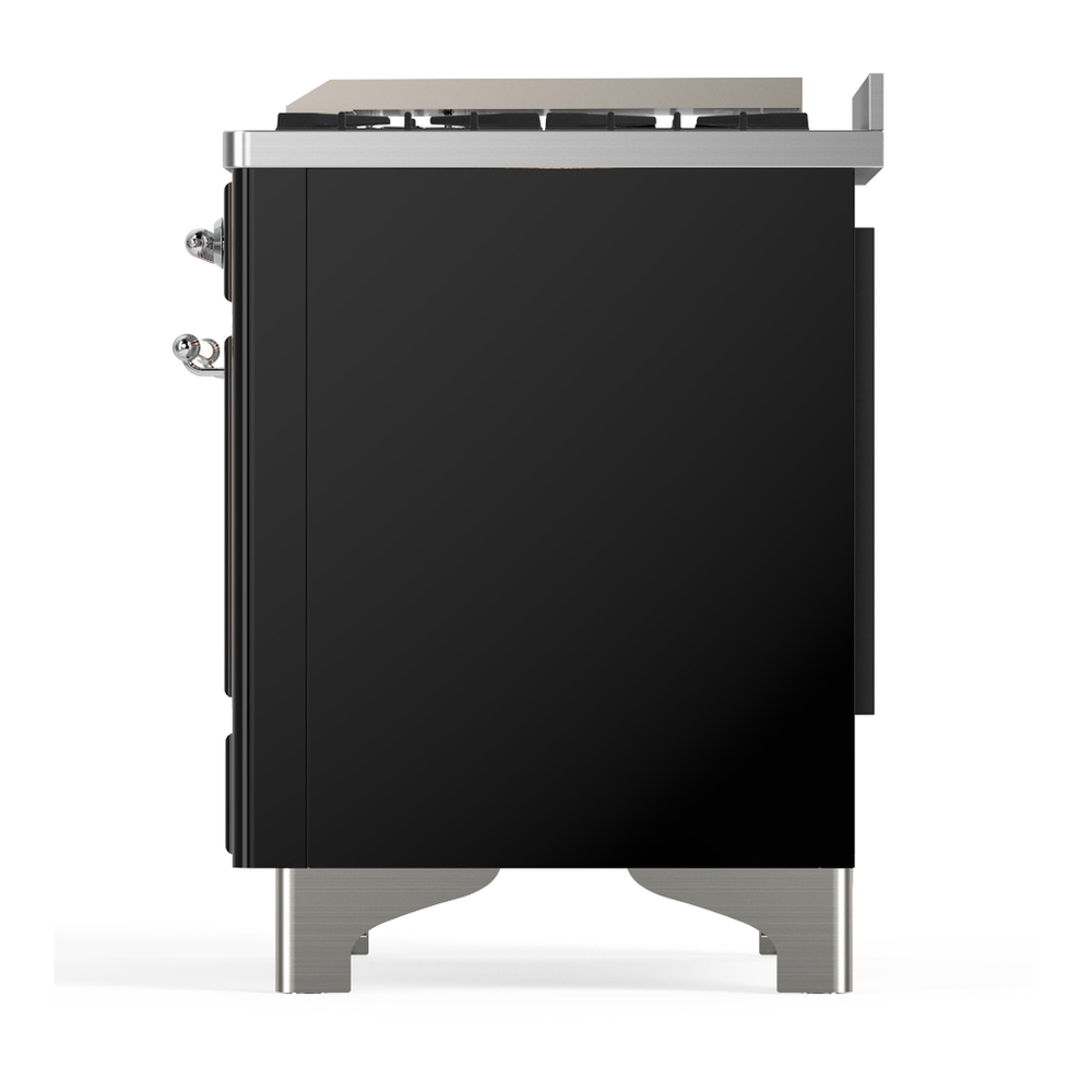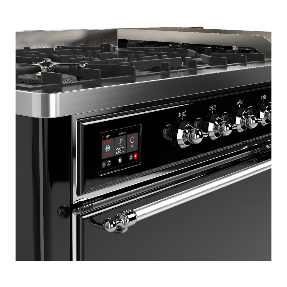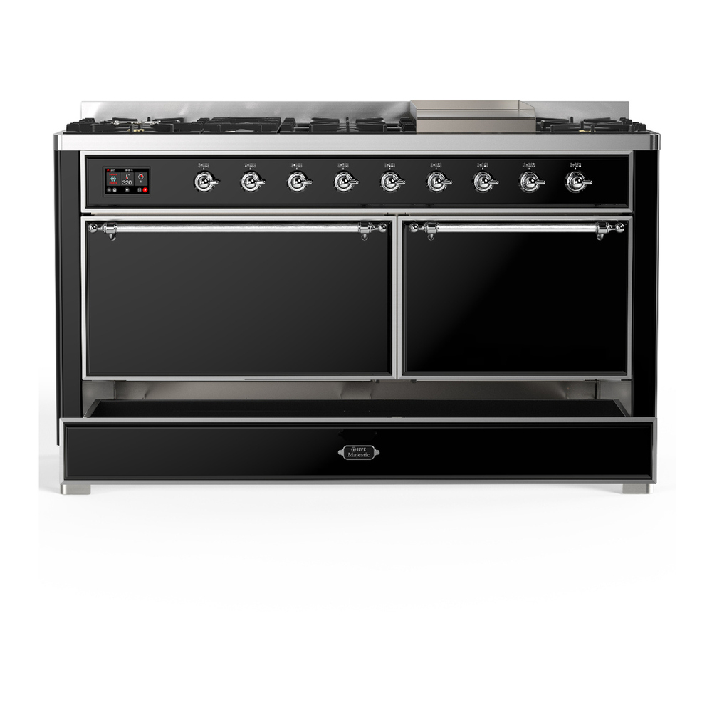 ILVE UM60FQNR3BKC Majestic III 60 inch Dual Fuel Range with 9 Burners and Griddle, Dual Function Burner up to 25,000 BTU (Natural Gas, Solid Door, Glossy Black, Chrome)