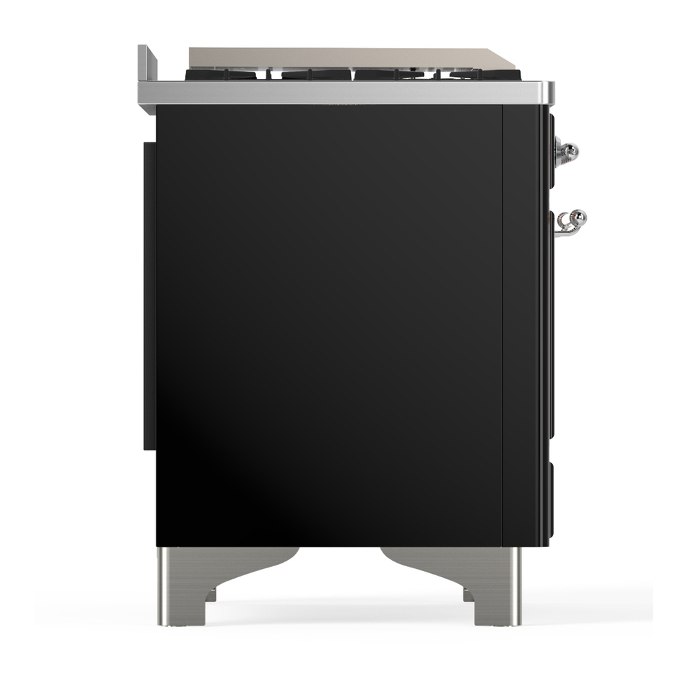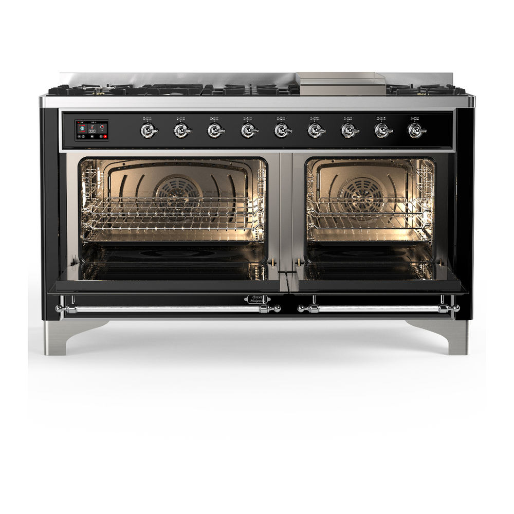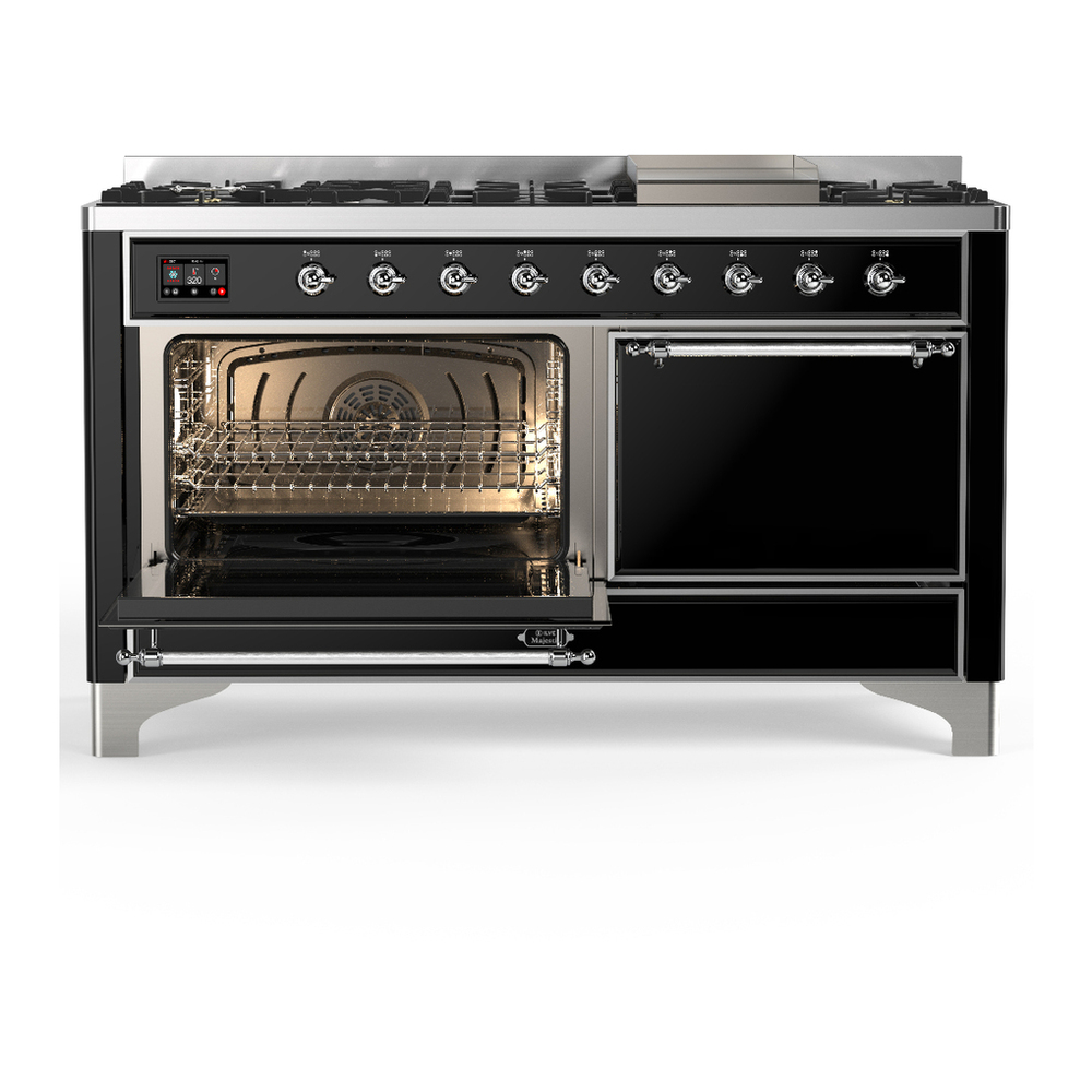 ILVE UM60FQNR3BKCLP Majestic III 60 inch Dual Fuel Range with 9 Burners and Griddle, Dual Function Burner up to 25,000 BTU (Liquid Propane, Solid Door, Glossy Black, Chrome)