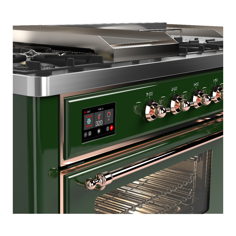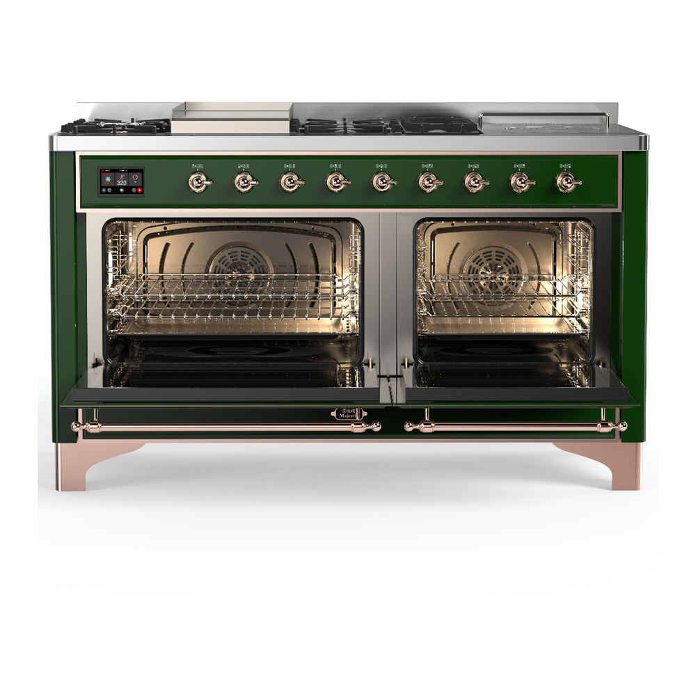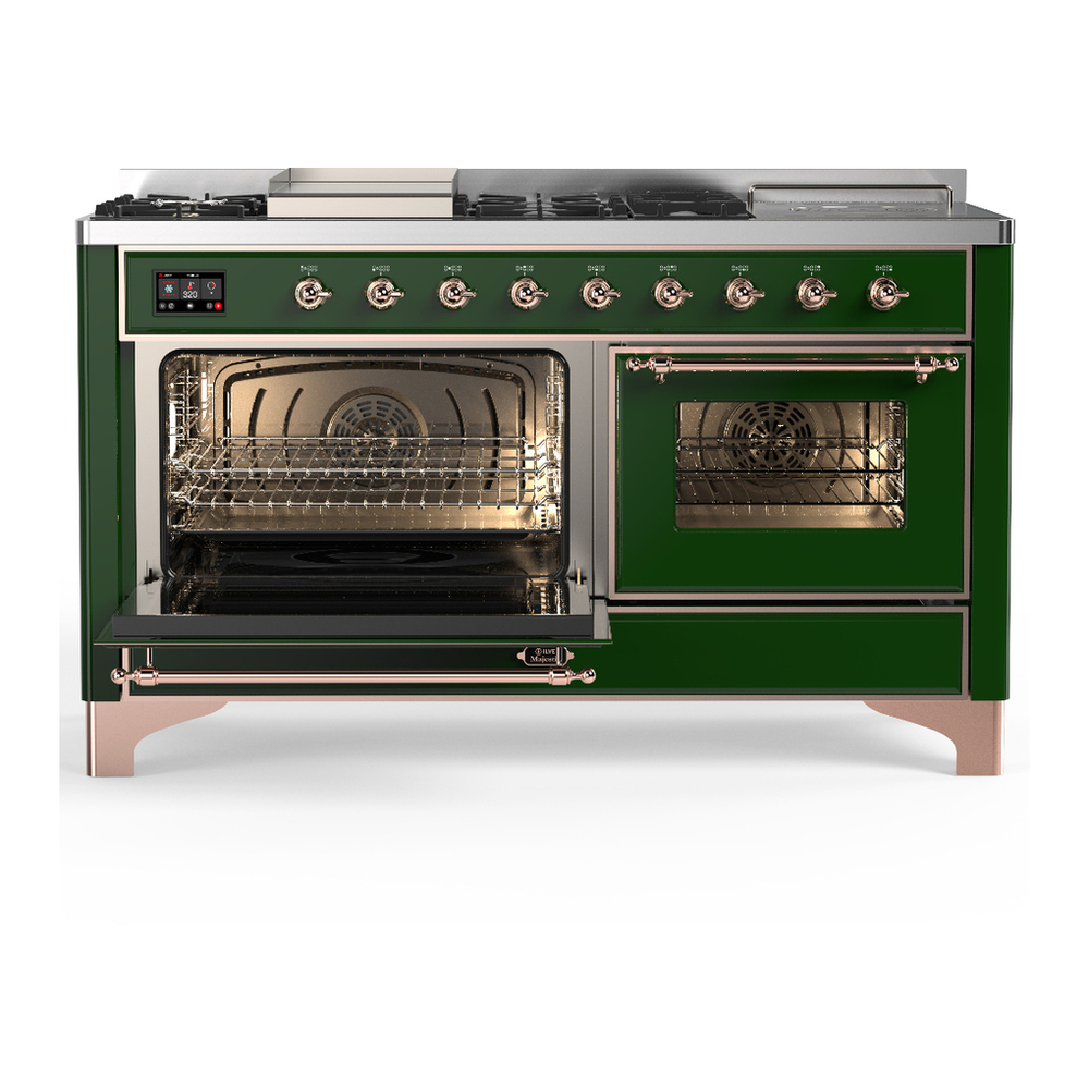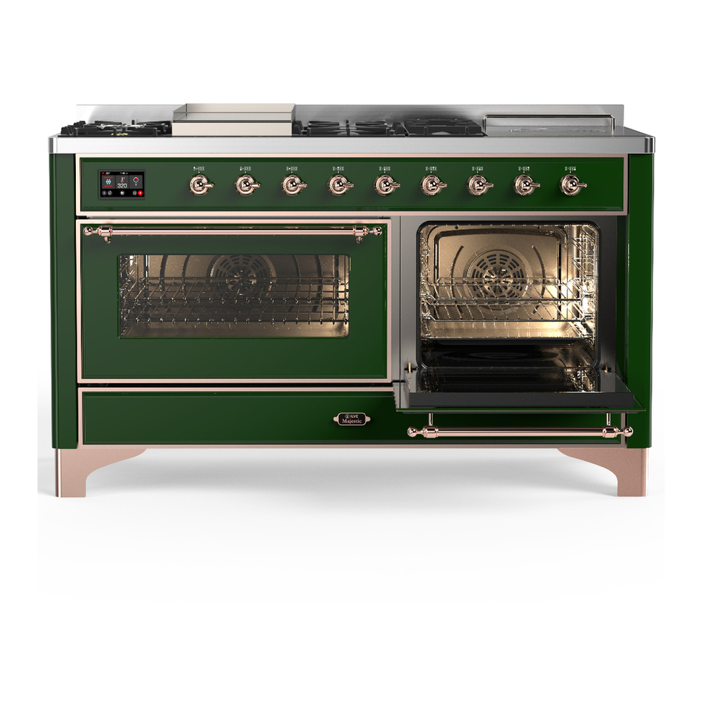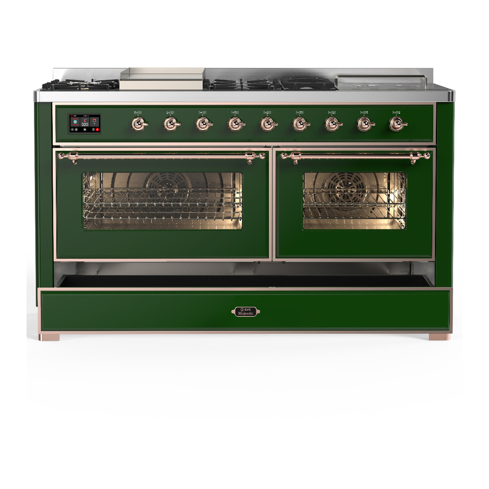 ILVE UM60FSNR3EGPLP Majestic III 60 inch Dual Fuel Range with 7 Burners, Griddle and French Top, Dual Function Burner with up to 25,000 BTU (Liquid Propane, Triple Glass Door, Emerald Green, Copper)