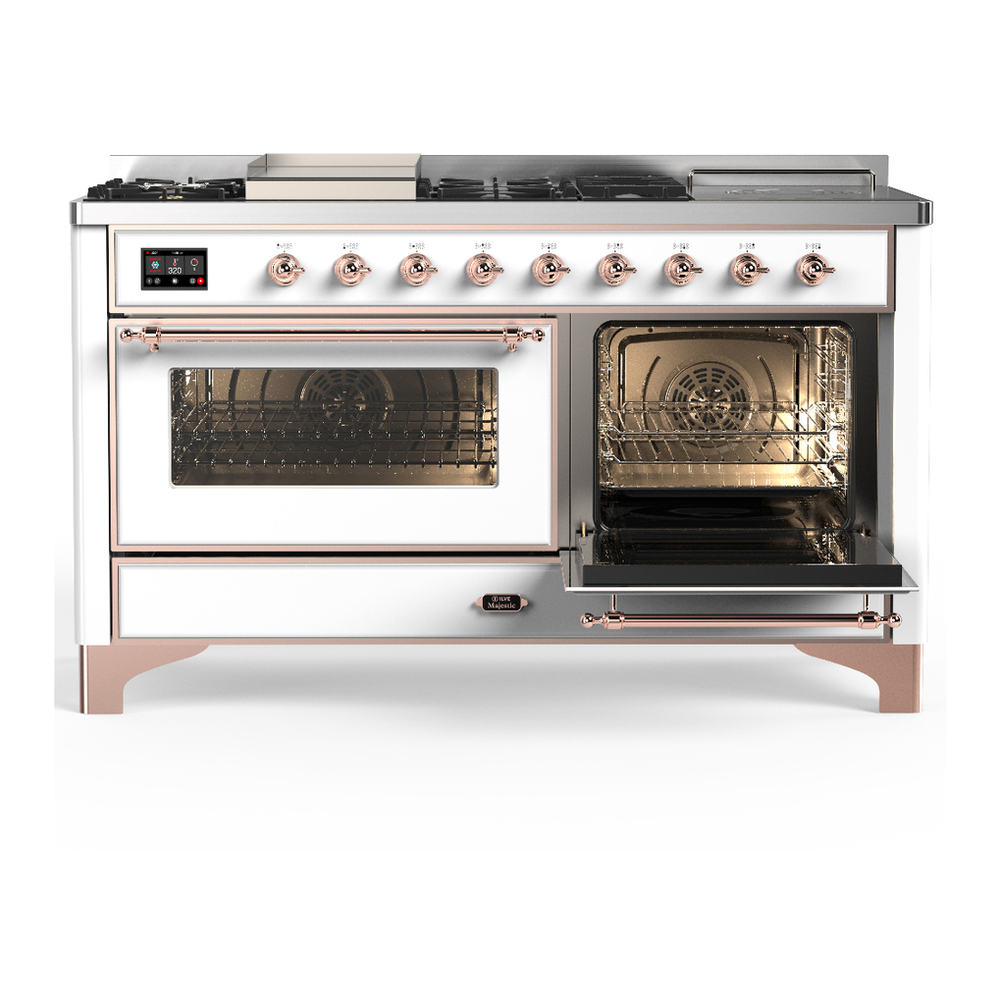 ILVE UM60FSNR3WHP Majestic III 60 inch Dual Fuel Range with 7 Burners, Griddle and French Top, Dual Function Burner with up to 25,000 BTU (Natural Gas, Triple Glass Door, White, Copper)
