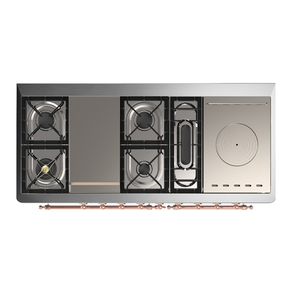 They are true gems of professionalism, designed for the kitchen in your home. They are available in a range of selected colors or in RAL Classic shades on request, combined with fine metallic finishes. Offered in a wide range of sizes (from 30 to 60 inches), they offer multiple set-up possibilities. There are three cooktop (hob) configurations to choose from: dual gas burners or fry top while the induction models are available up to the 40″ size.