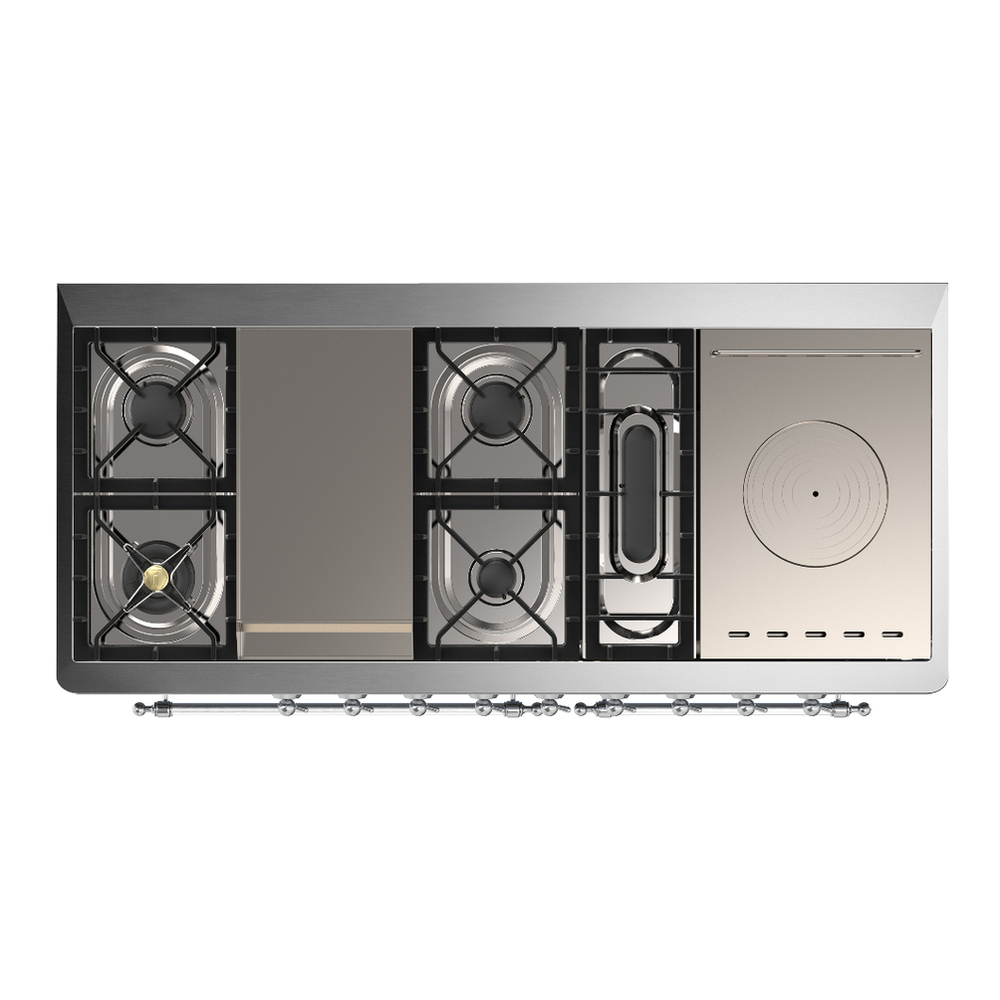 Structure in AISI 304 steel with 12/10 thickness, option to choose ideal combination between a gas cooktop(hob) with up to 9 burners or induction, mixed and in various setups.