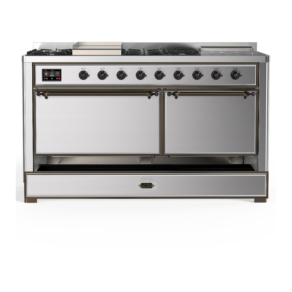 ILVE UM60FSQNR3SSB Majestic III 60 inch Dual Fuel Range with 7 Burners, Griddle and French Top, Dual Function Burner with up to 25,000 BTU (Natural Gas, Solid Door, Stainless Steel, Burnished)