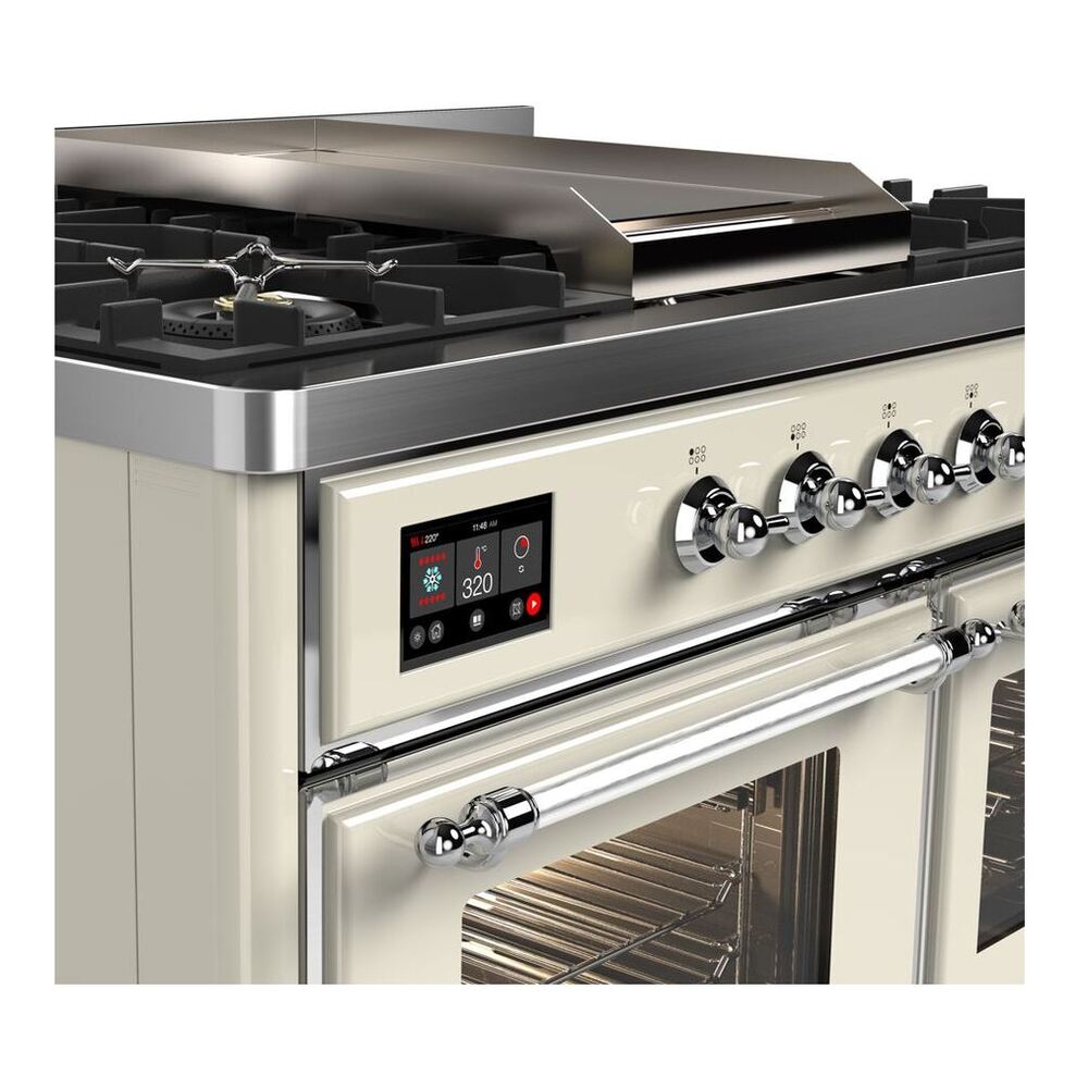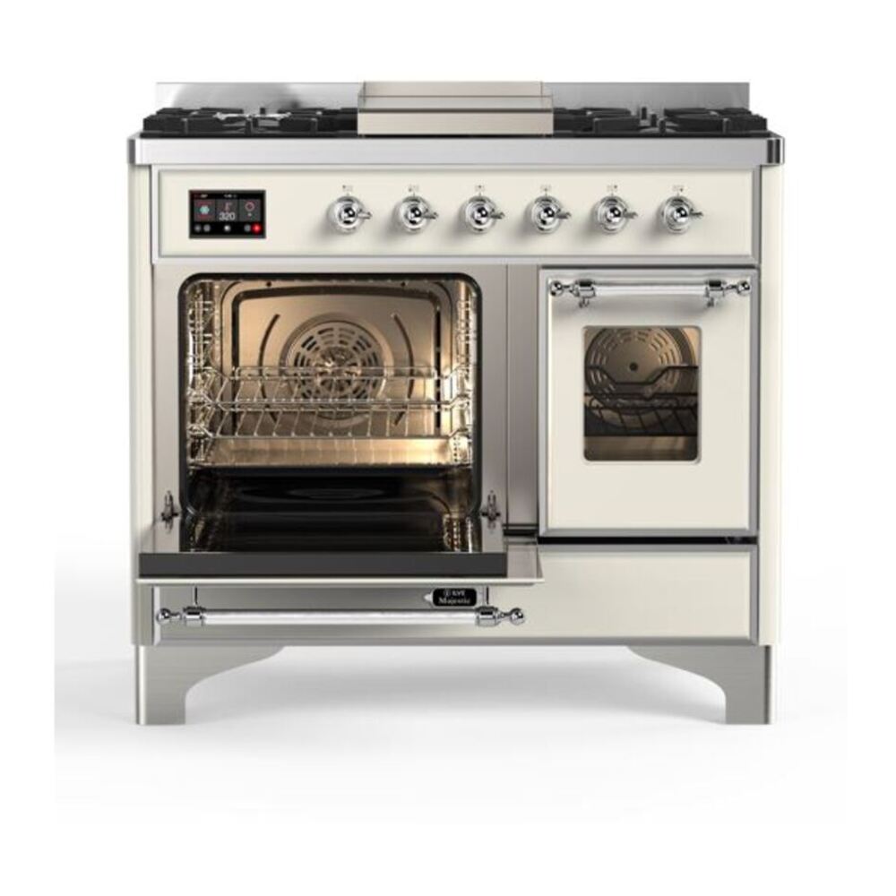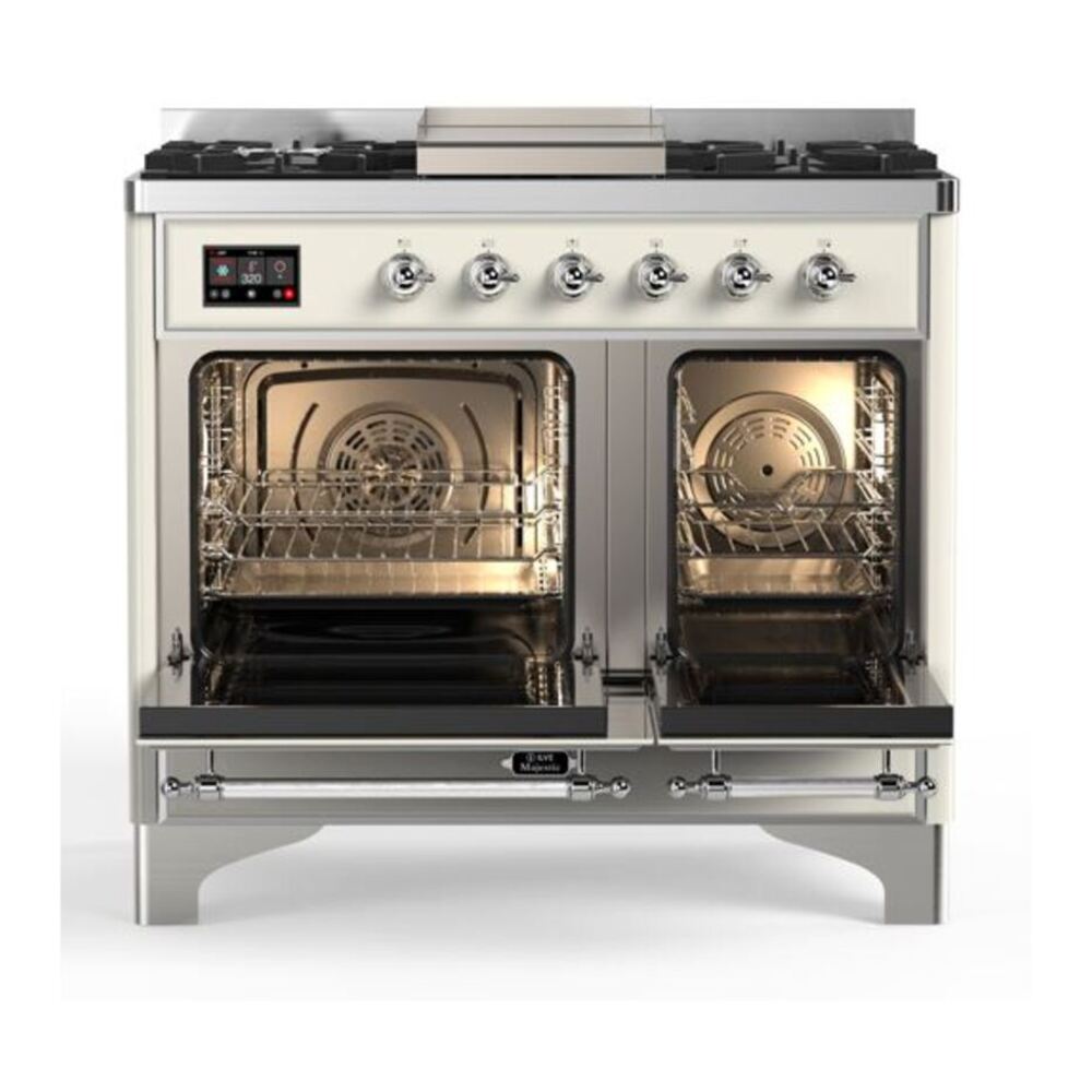ILVE UMD10FDNS3AWCLP Majestic II 40 inch Dual Fuel Range with 6 Burners, Griddle (Liquid Propane, Triple Glass Door, Antique White, Chrome)