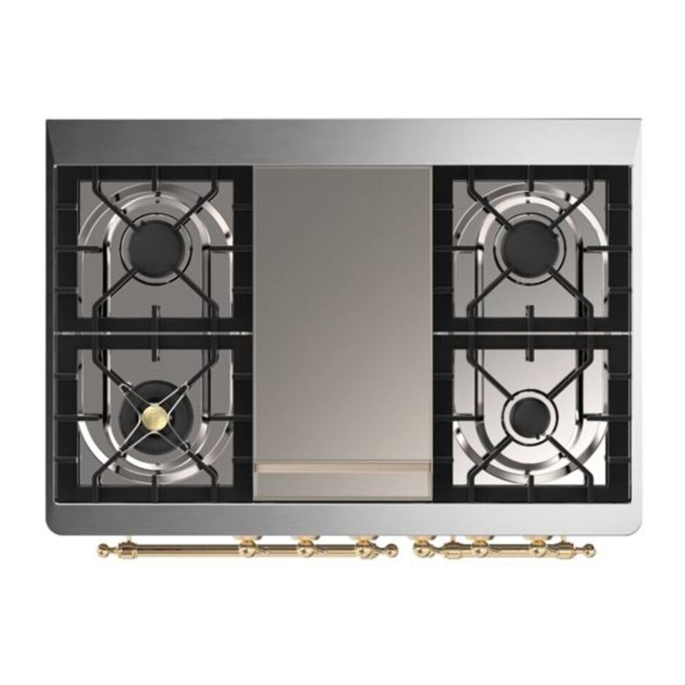 ILVE UMD10FDNS3SSGLP Majestic II 40 inch Dual Fuel Range with 6 Burners, Griddle (Liquid Propane, Triple Glass Door, Stainless Steel, Brass)