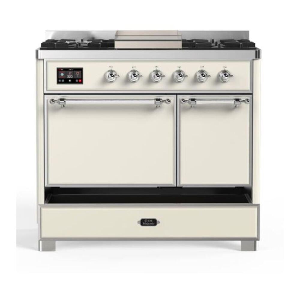 ILVE UMD10FDQNS3AWC Majestic II 40 inch Dual Fuel Range with 6 Burners, Griddle (Natural Gas, Solid Door, Antique White, Chrome)