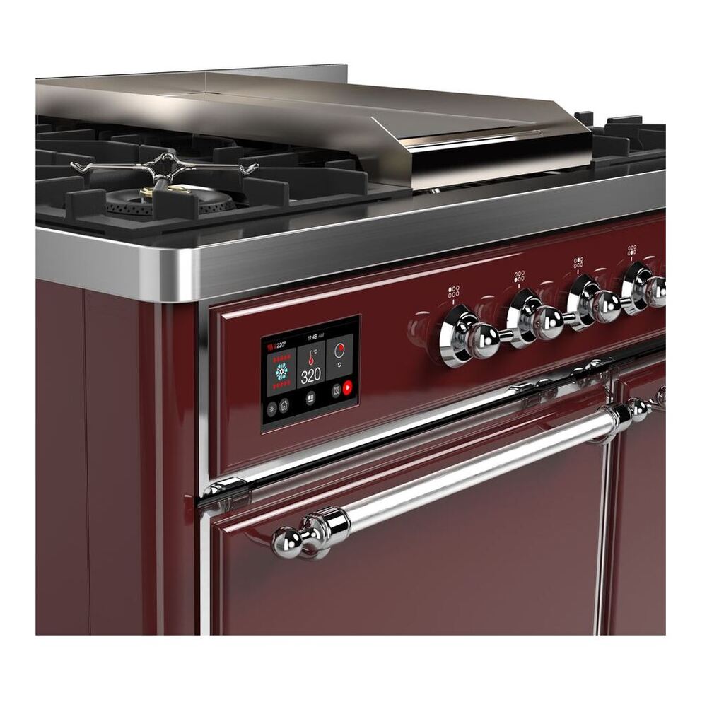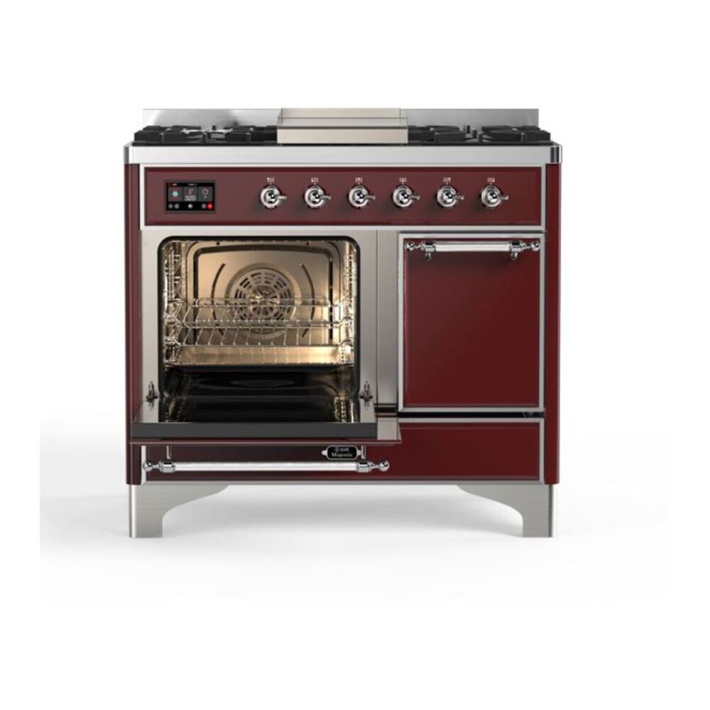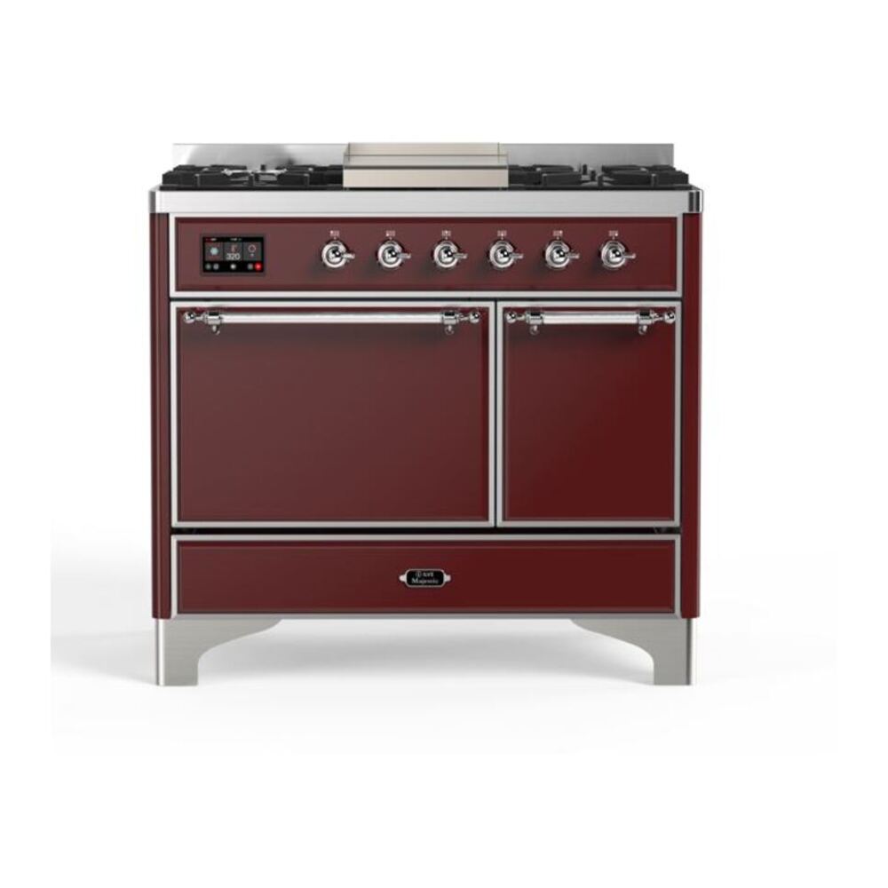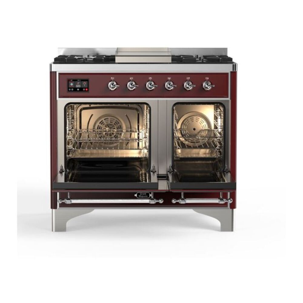 ILVE UMD10FDQNS3BUCLP Majestic II 40 inch Dual Fuel Range with 6 Burners, Griddle (Liquid Propane, Solid Door, Burgundy, Chrome)
