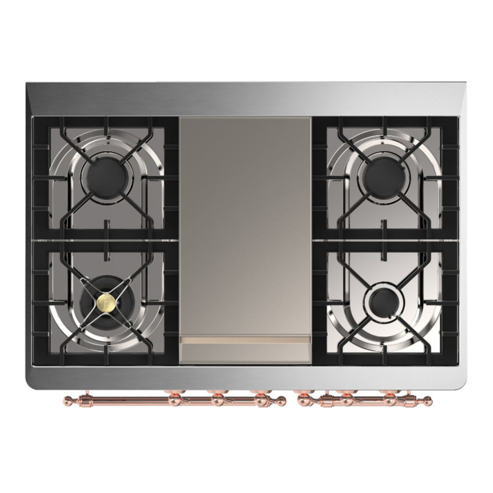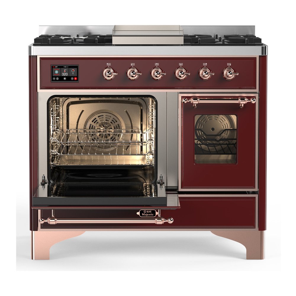 ILVE UMD40FNR3BUP Majestic III 40 inch Dual Fuel Range with 6 Burners and Griddle, Dual Function Burner up to 25,000 BTU (Natural Gas, Triple Glass Door, Burgundy, Copper)
