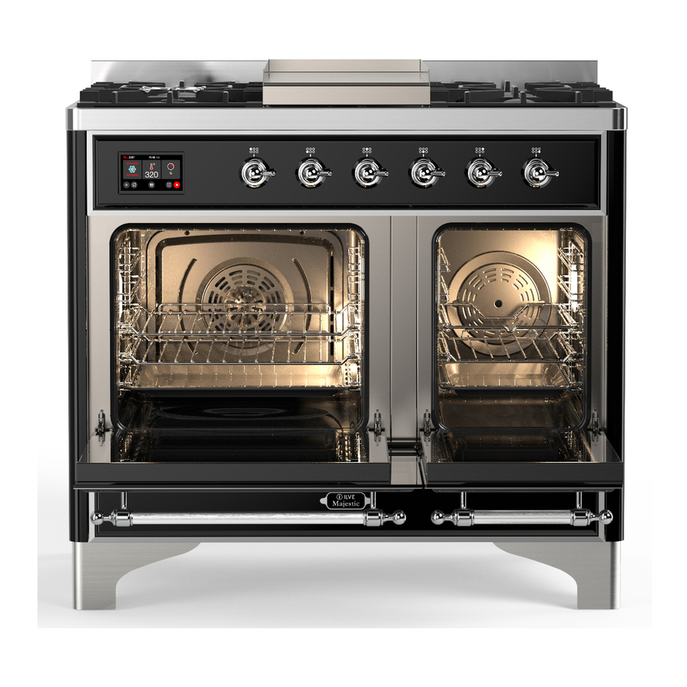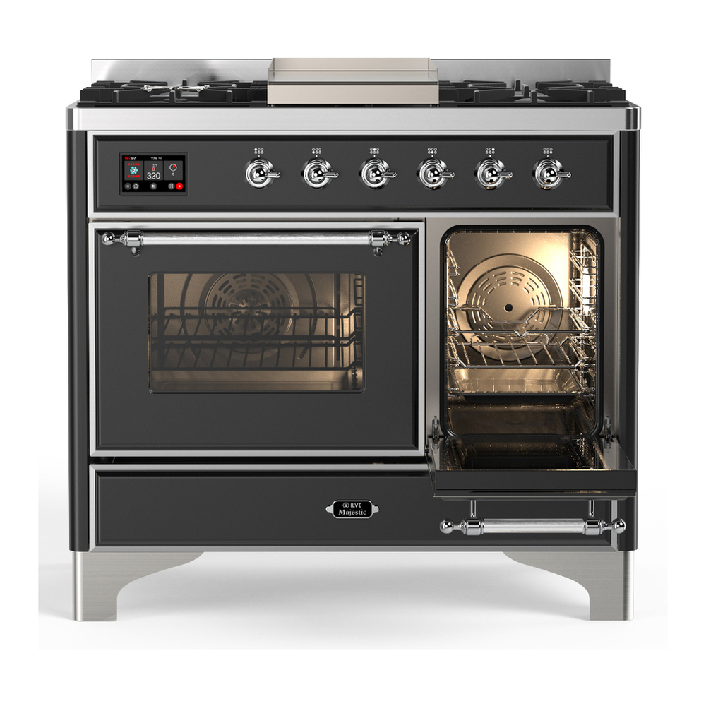 ILVE UMD40FNR3MGC Majestic III 40 inch Dual Fuel Range with 6 Burners and Griddle, Dual Function Burner up to 25,000 BTU (Natural Gas, Triple Glass Door, Graphite Matte, Chrome)