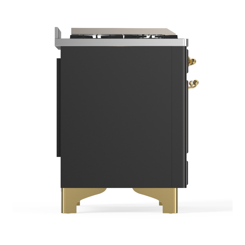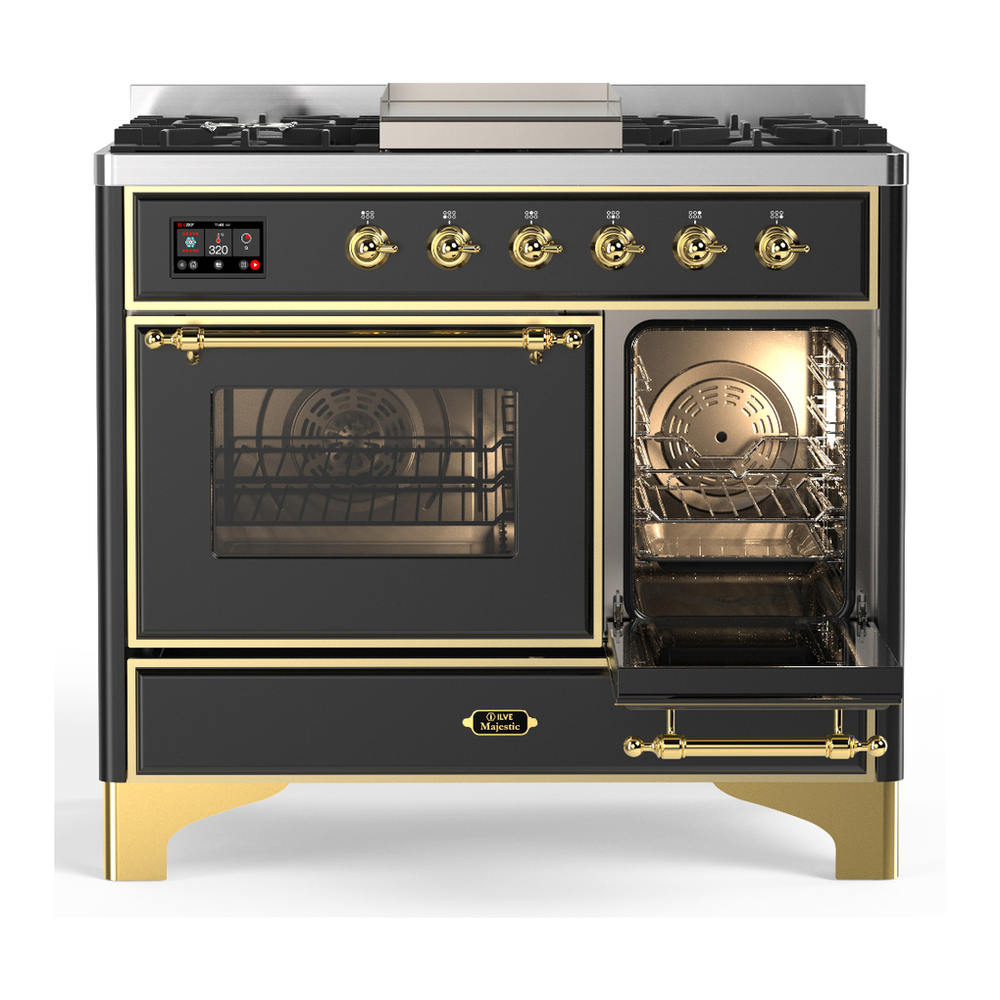 ILVE UMD40FNR3MGGLP Majestic III 40 inch Dual Fuel Range with 6 Burners and Griddle, Dual Function Burner up to 25,000 BTU (Liquid Propane, Triple Glass Door, Graphite Matte, Brass)
