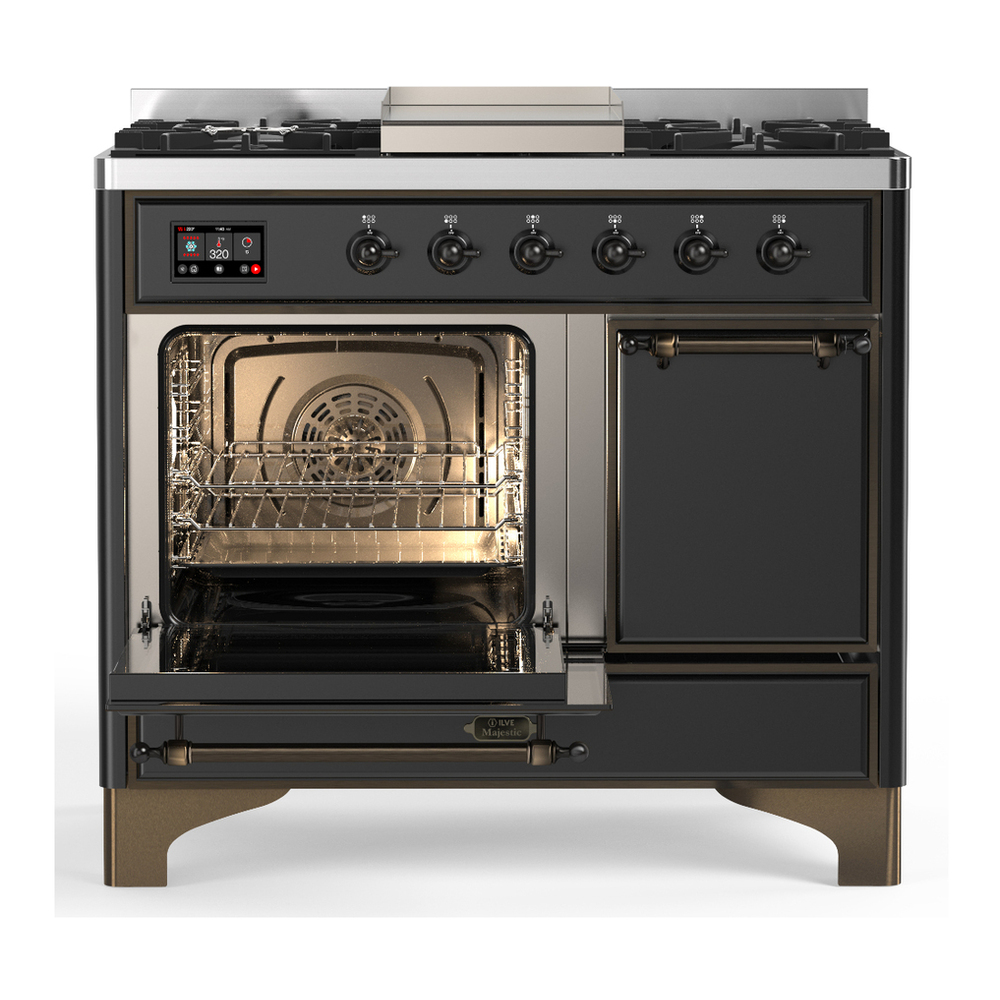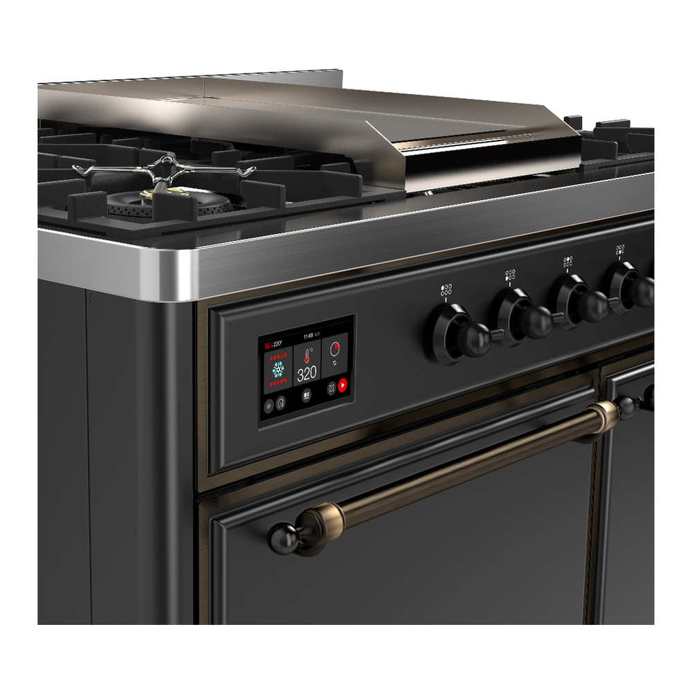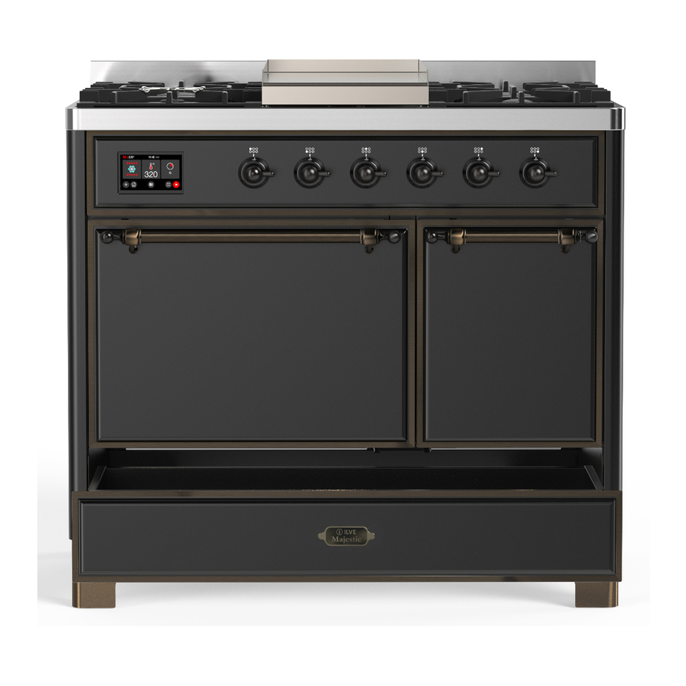 ILVE UMD40FQNR3MGB Majestic III 40 inch Dual Fuel Range with 6 Burners and Griddle, Dual Function Burner up to 25,000 BTU (Natural Gas, Solid Door, Graphite Matte, Burnished)