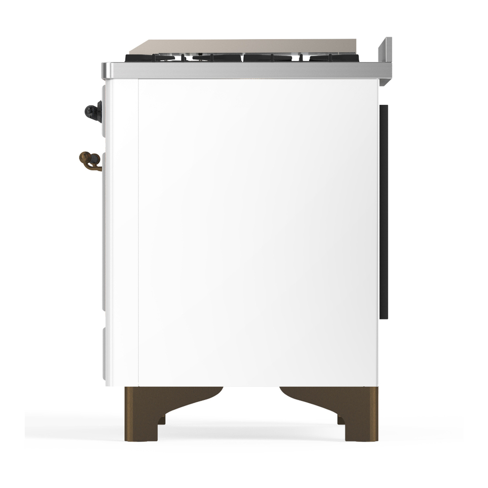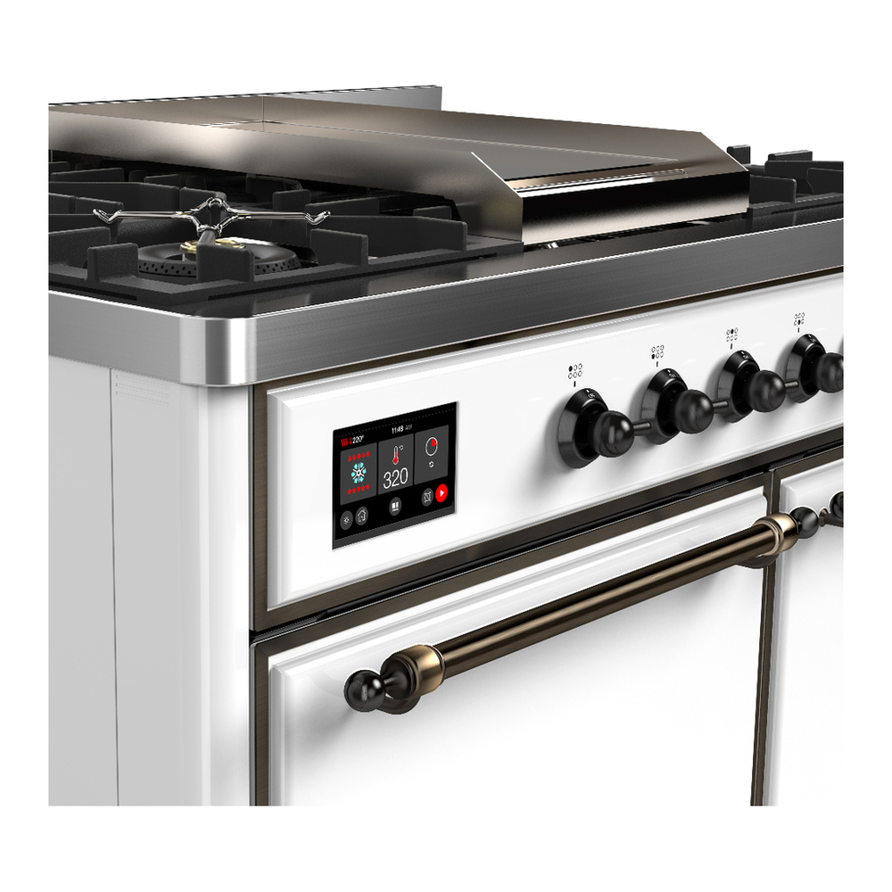ILVE UMD40FQNR3WHBLP Majestic III 40 inch Dual Fuel Range with 6 Burners and Griddle, Dual Function Burner up to 25,000 BTU (Liquid Propane, Solid Door, White, Burnished)