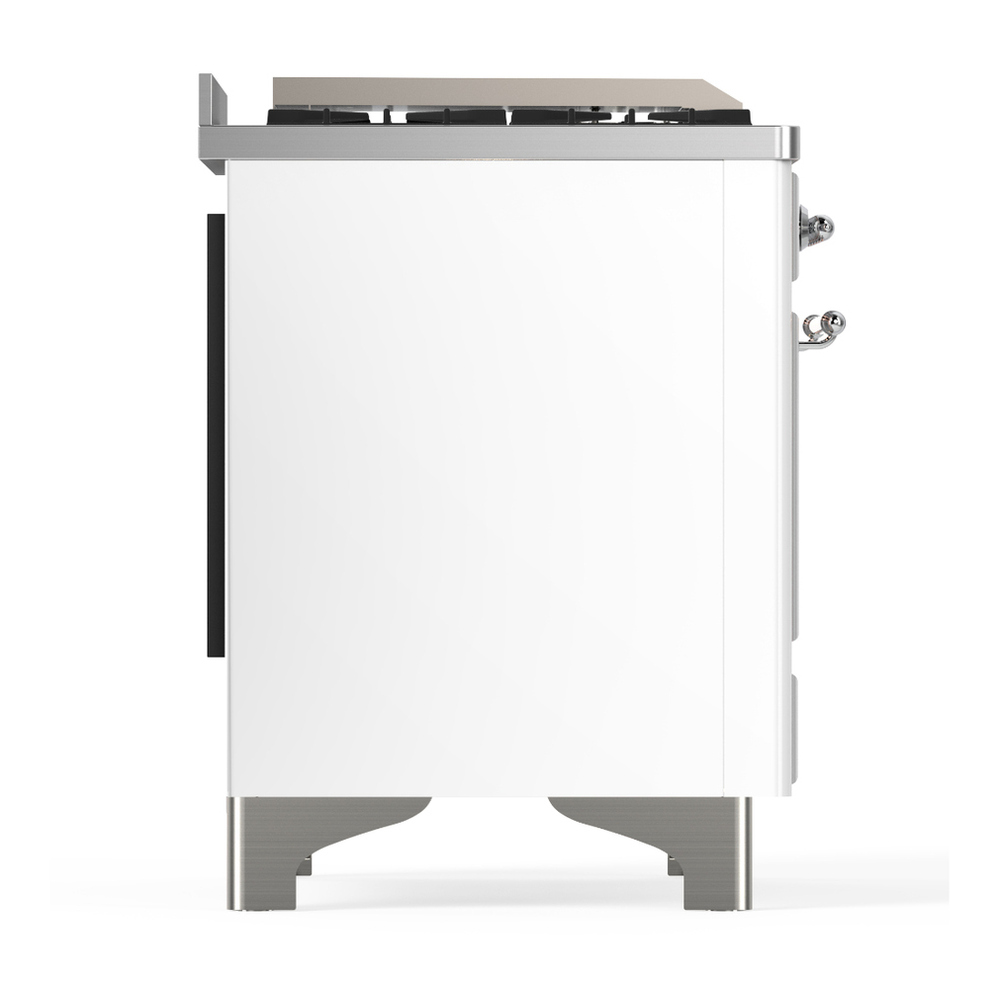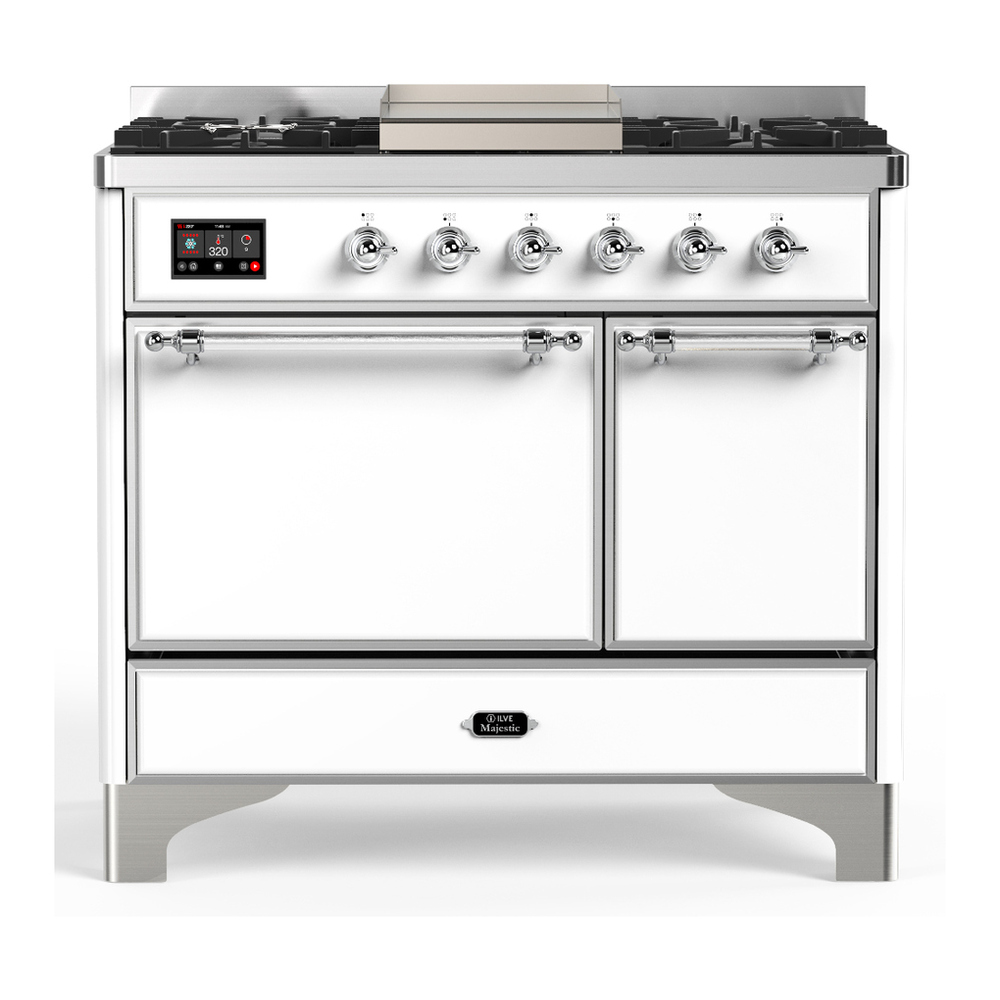 ILVE UMD40FQNR3WHCLP Majestic III 40 inch Dual Fuel Range with 6 Burners and Griddle, Dual Function Burner up to 25,000 BTU (Liquid Propane, Solid Door, White, Chrome)