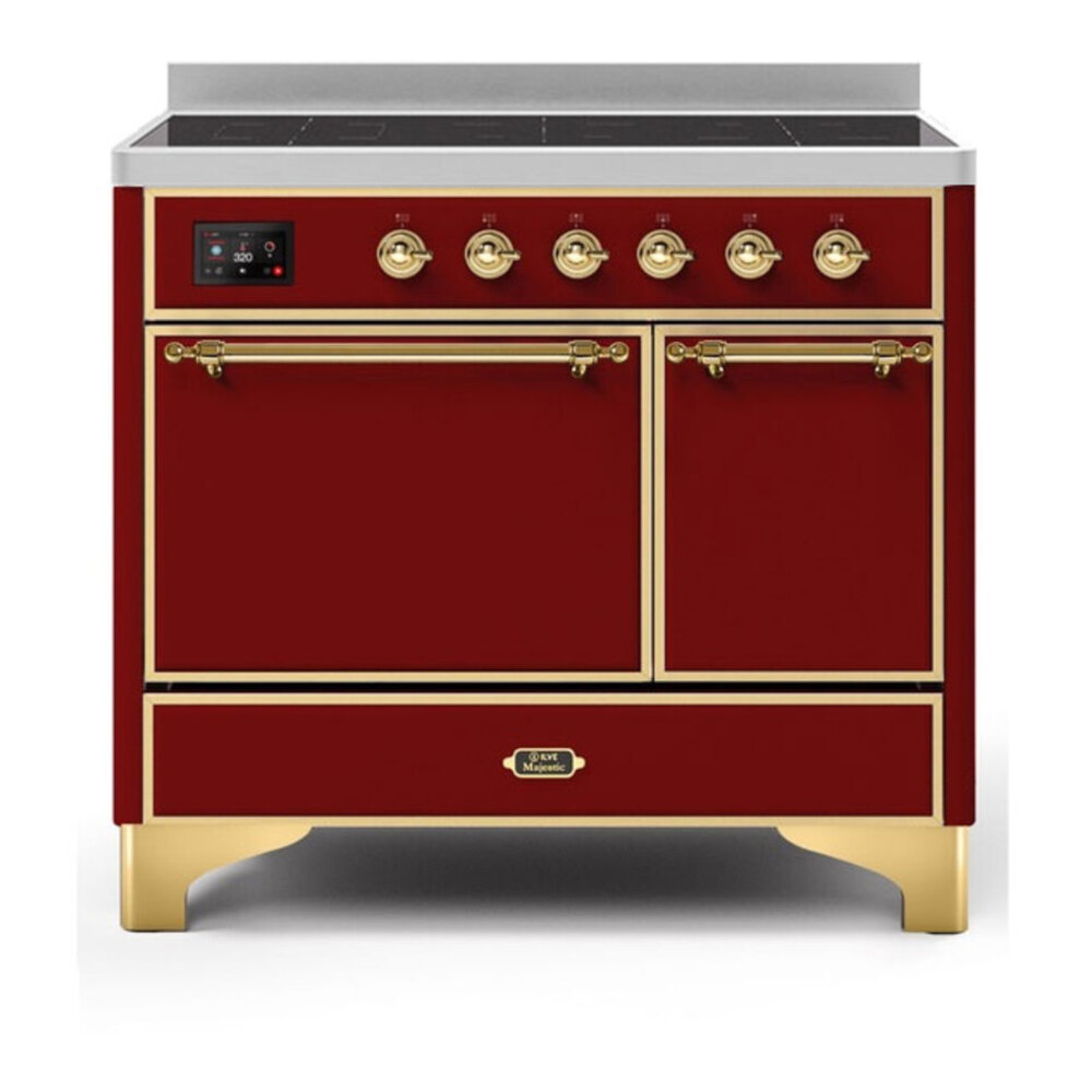 ILVE UMDI10QNS3BUG Majestic II 40 inch Induction Range with 6 Elements, Booster Function, Bridge Control, Residual Heat Indicator (Solid Door, Burgundy, Brass)