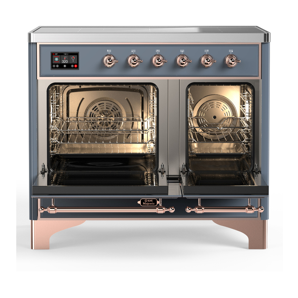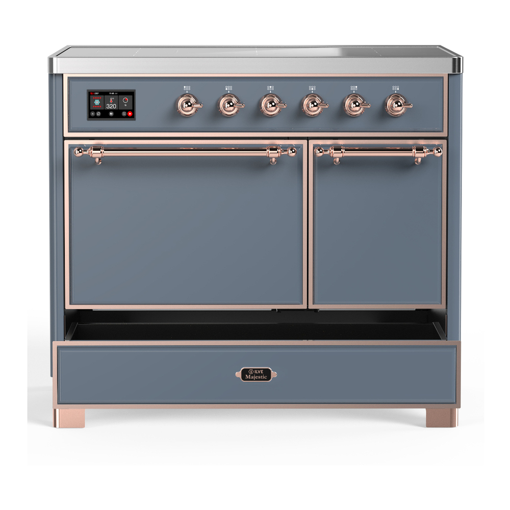 ILVE UMDIB40QNR3BGP Majestic III 40 inch Induction Range with 6 Elements, 3.82 cu. ft. Total Oven Capacity (Solid Door, Blue Grey, Copper)