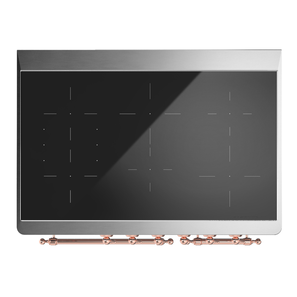 The Majestic 40″ induction range combines the classic Italian style and cutting-edge technology. This range features 6 precise and efficient element zone, dual 2.3 + 1.52 cu. ft. total oven capacity, 4.3″ full touch oven control display and easy clean enamel oven cavity.