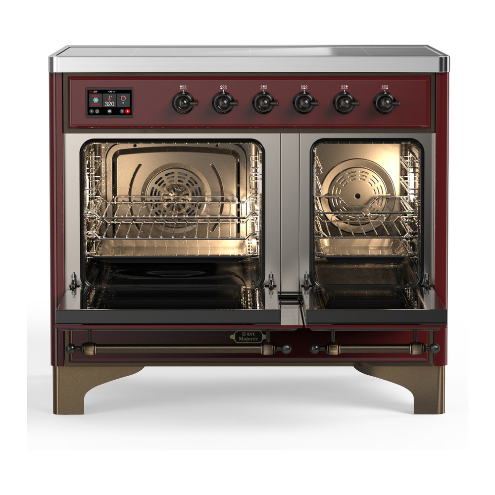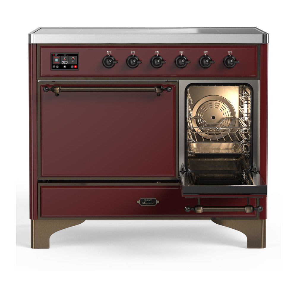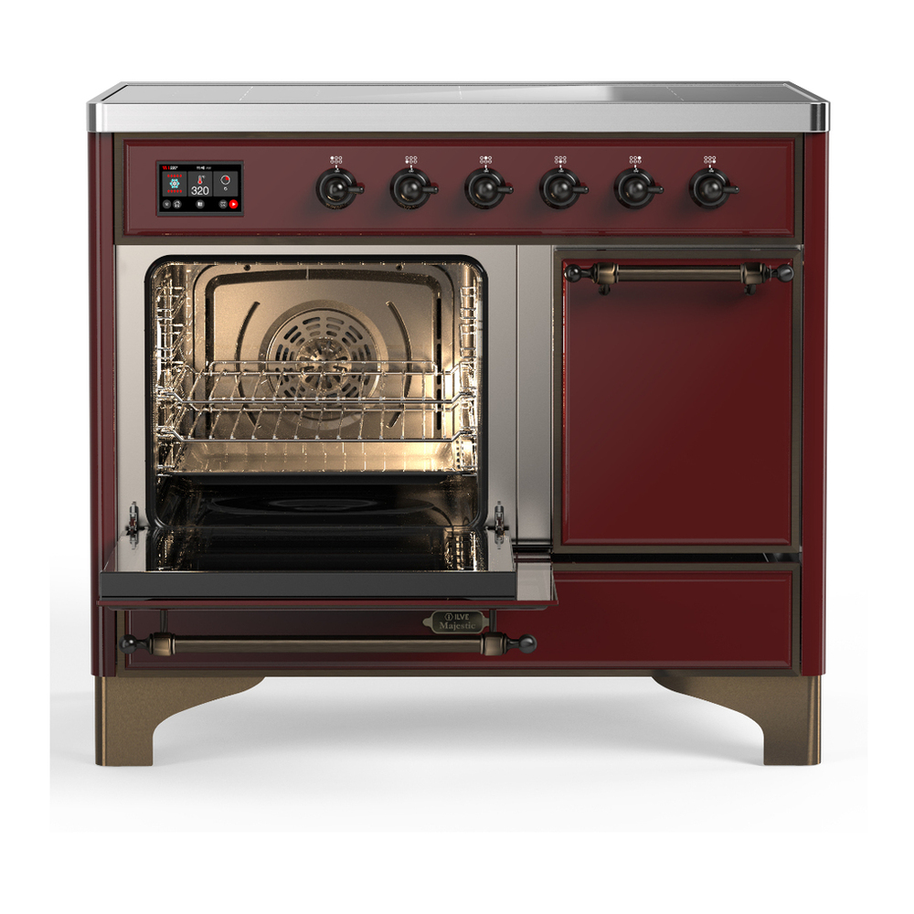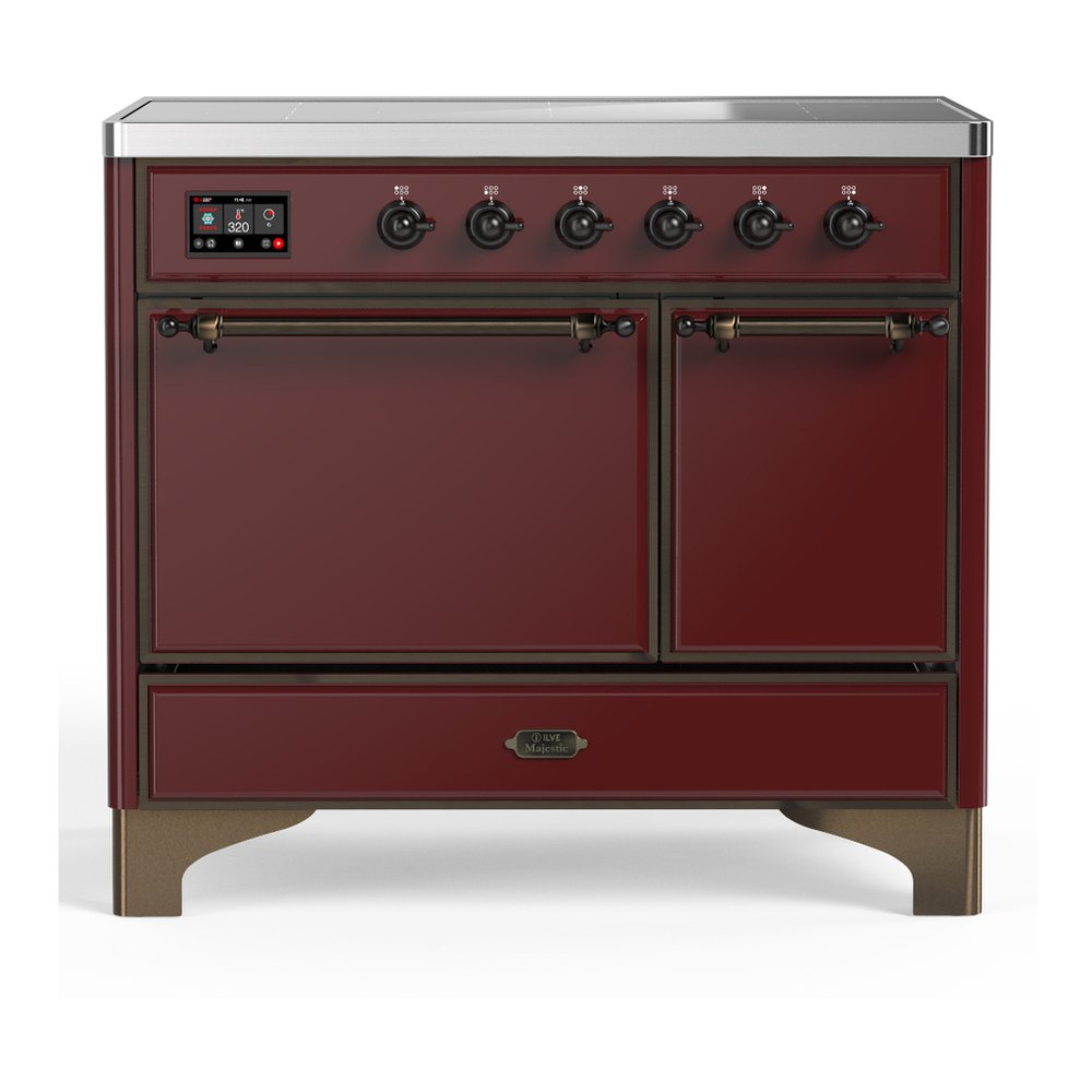 ILVE UMDIB40QNR3BUB Majestic III 40 inch Induction Range with 6 Elements, 3.82 cu. ft. Total Oven Capacity (Solid Door, Burgundy, Burnished)